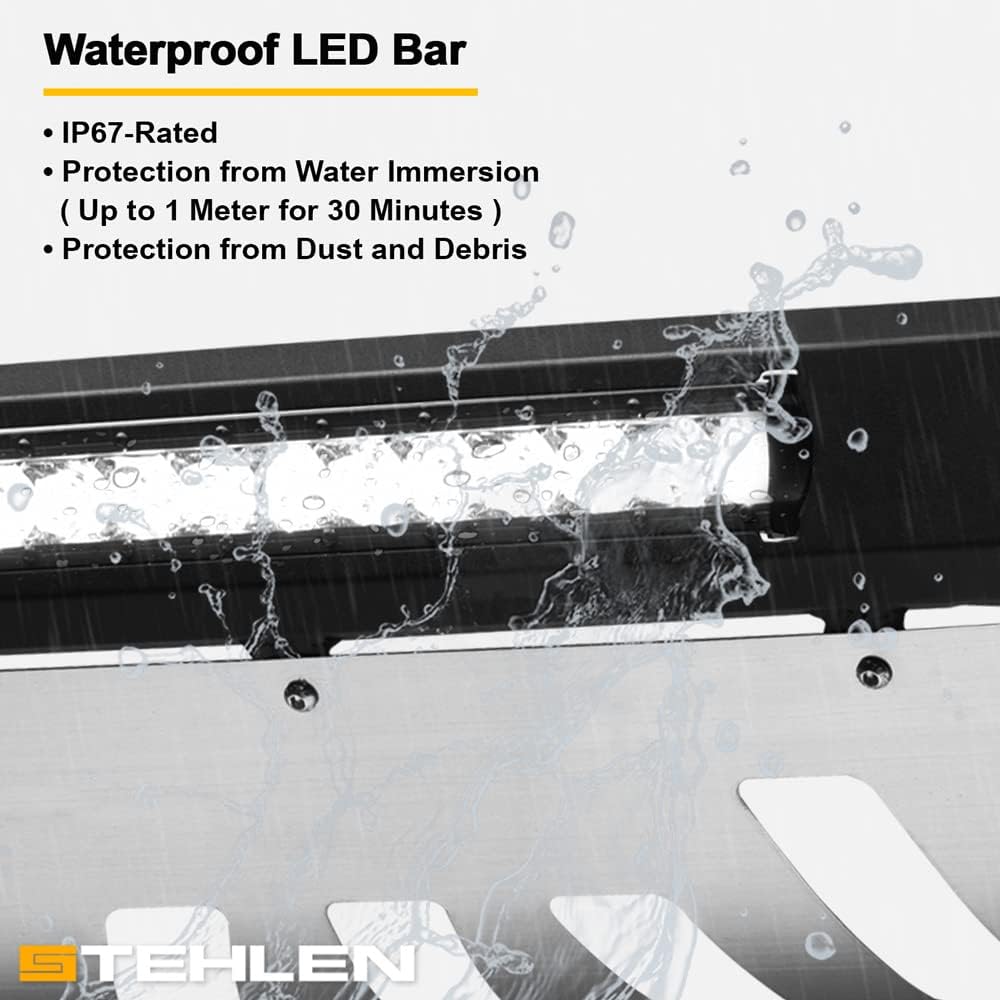 Built-In LED Light Bar: Straight Light Bar with 1 Row of LEDs. High Intensity LEDs Super Bright Offroad Style. Comes with Light Bar Switch Control