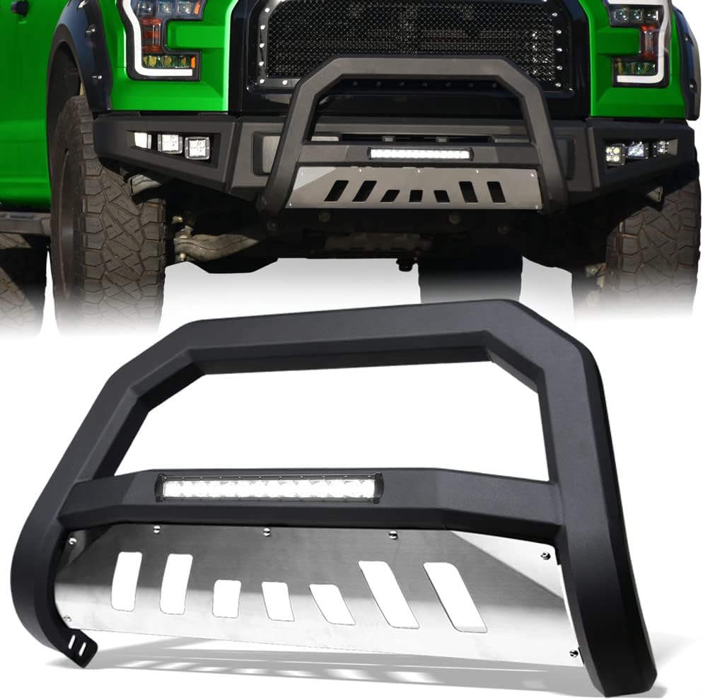 642167834601 Compatible with 2021-2024 Ford Bronco Advance Series Aluminum LED Bull Bar – Matte Black/Brush Aluminum Skid Plate