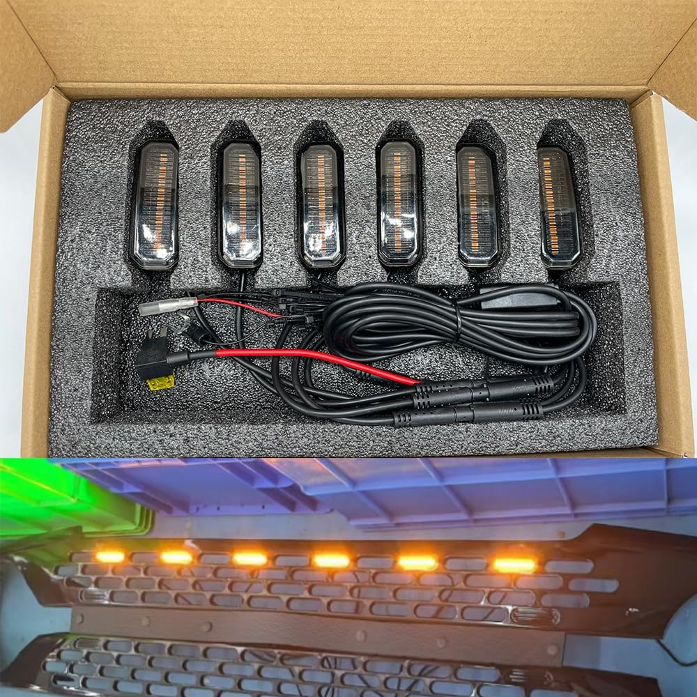 6pcs LED Car Grille Lights Fit For Ford Bronco(2022-2025) Grille Flasher Set Grille Hazard Warning Light Front Bumper Cover Light Cool Grille Decoration Car Exterior Accessories (white)