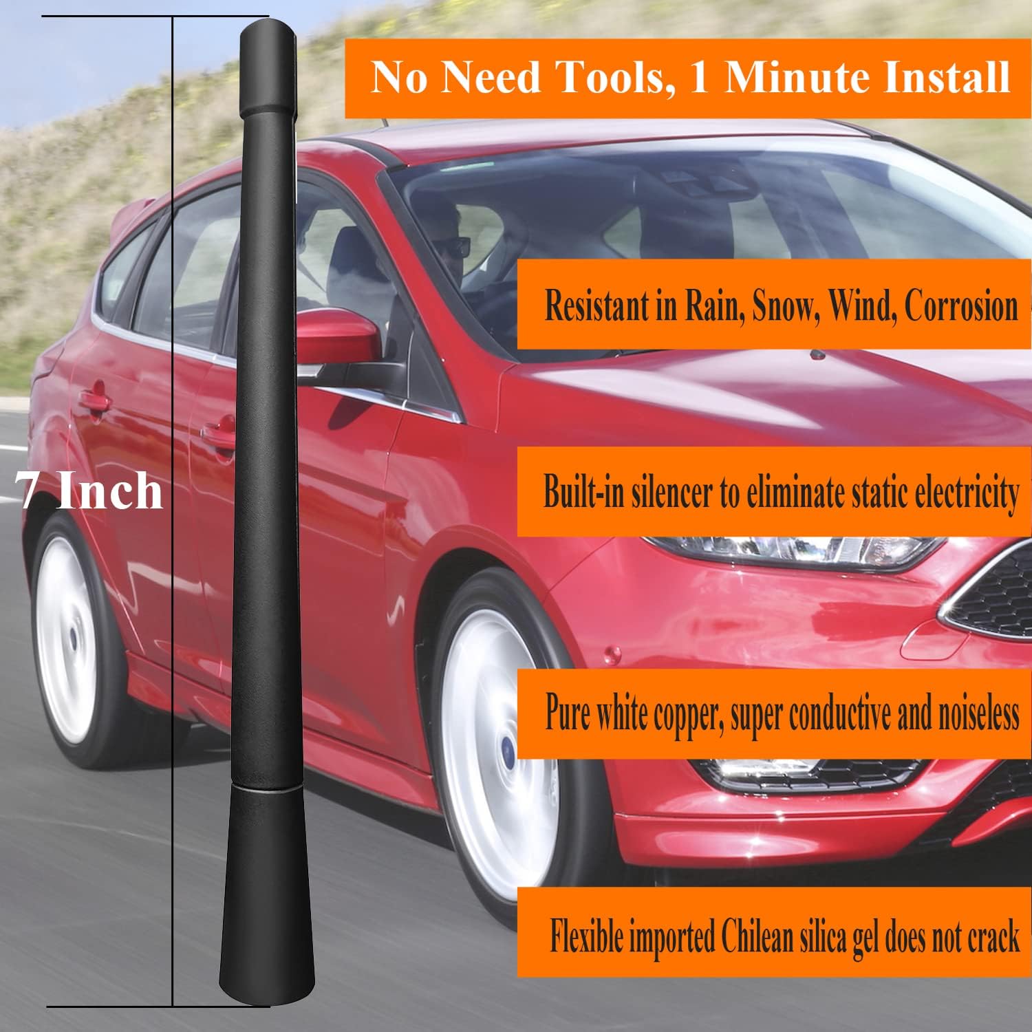 7 Inch Antenna Replacement for Ford Focus (2008-2018), Ford Focus Antenna, Flexible Rubber Antenna Mast