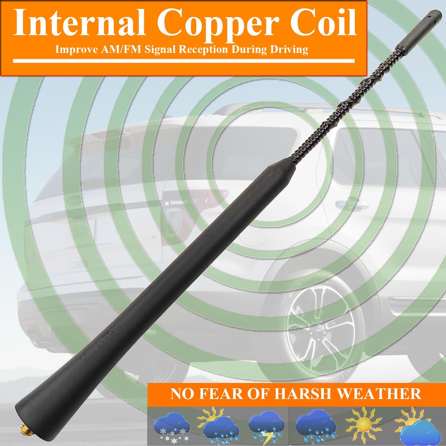 【 Strong Reception 】 – The antenna replacement is designed for optimized car radio AM FM reception and does not affect the use of GPS and other devices. The copper coil made the radio antenna perform better in reception than other low profile antennas. You can enjoy clear reception from a lot of local radio stations.