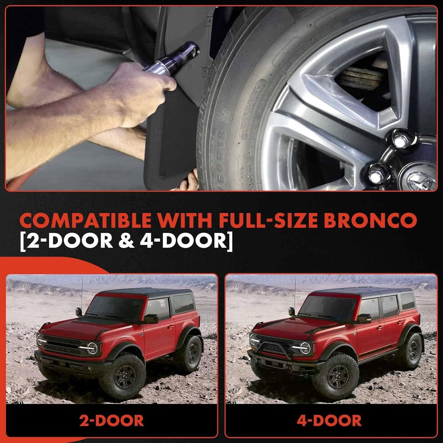 [Vehicle Fitment]: Compatible with Ford Bronco [Sport Utility] 2024 2023 2022 2021 – [for Raptor, Everglades 2022 4-Door // for Base, Big Bend, Outer Banks 2021-2022 2-Door and 4-Door] —Not fit Bronco Sport Model; It doesn’t fits the model with Sasquatch package