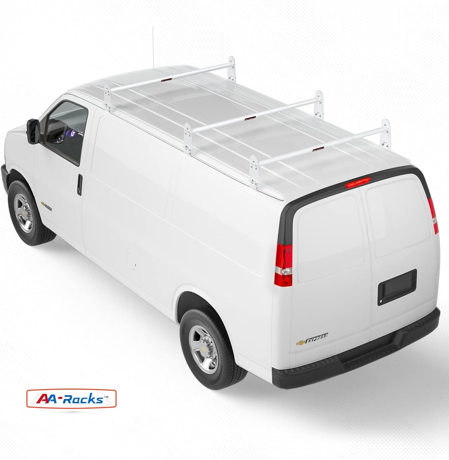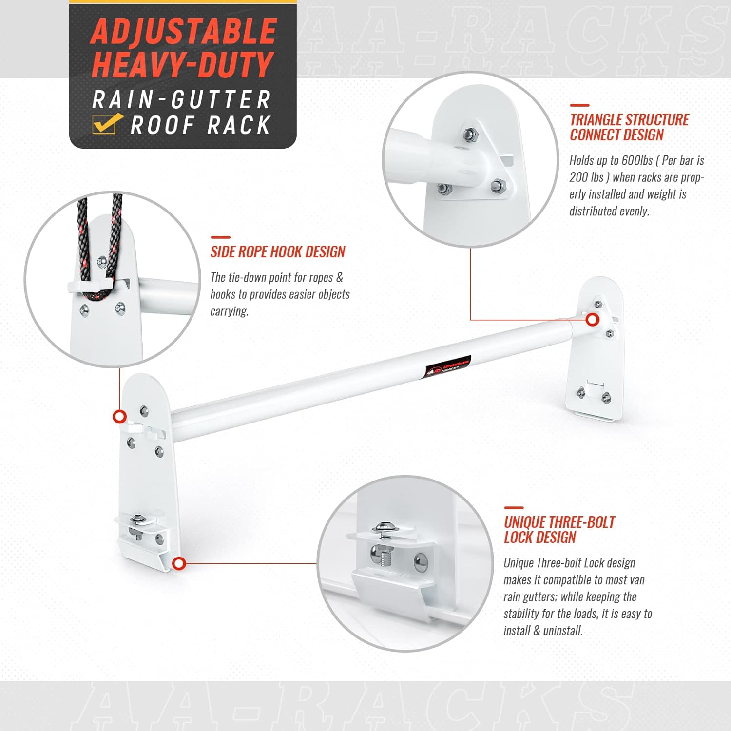 AA-Racks Model X316 Hightop 3 Bar Rain-Gutter Roof Rack Heavy-Duty Adjustable Steel High Roof Rack Matte White