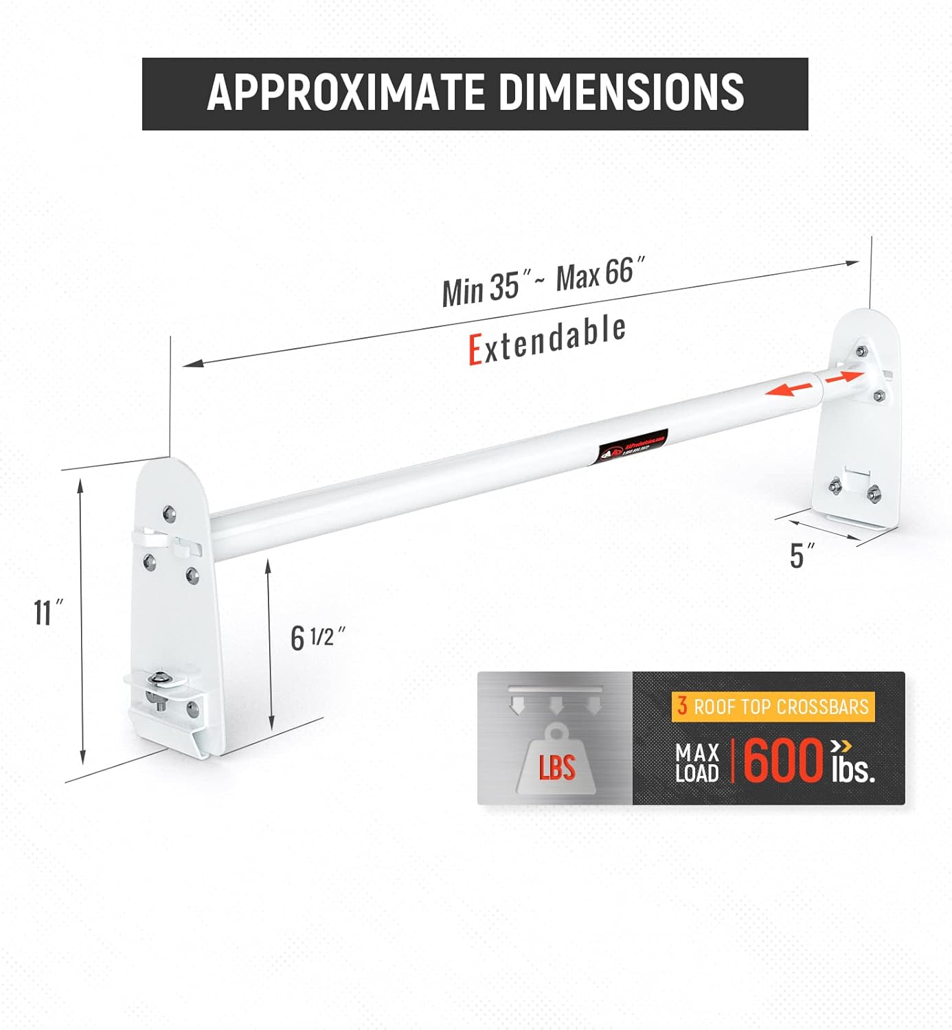 Adjustable Middle Bar design which fits the new model van with uneven roof. It has an adjustable range of 5/8” (16mm). It fits both the older models and newer model vans, making it universal to most cargo vans