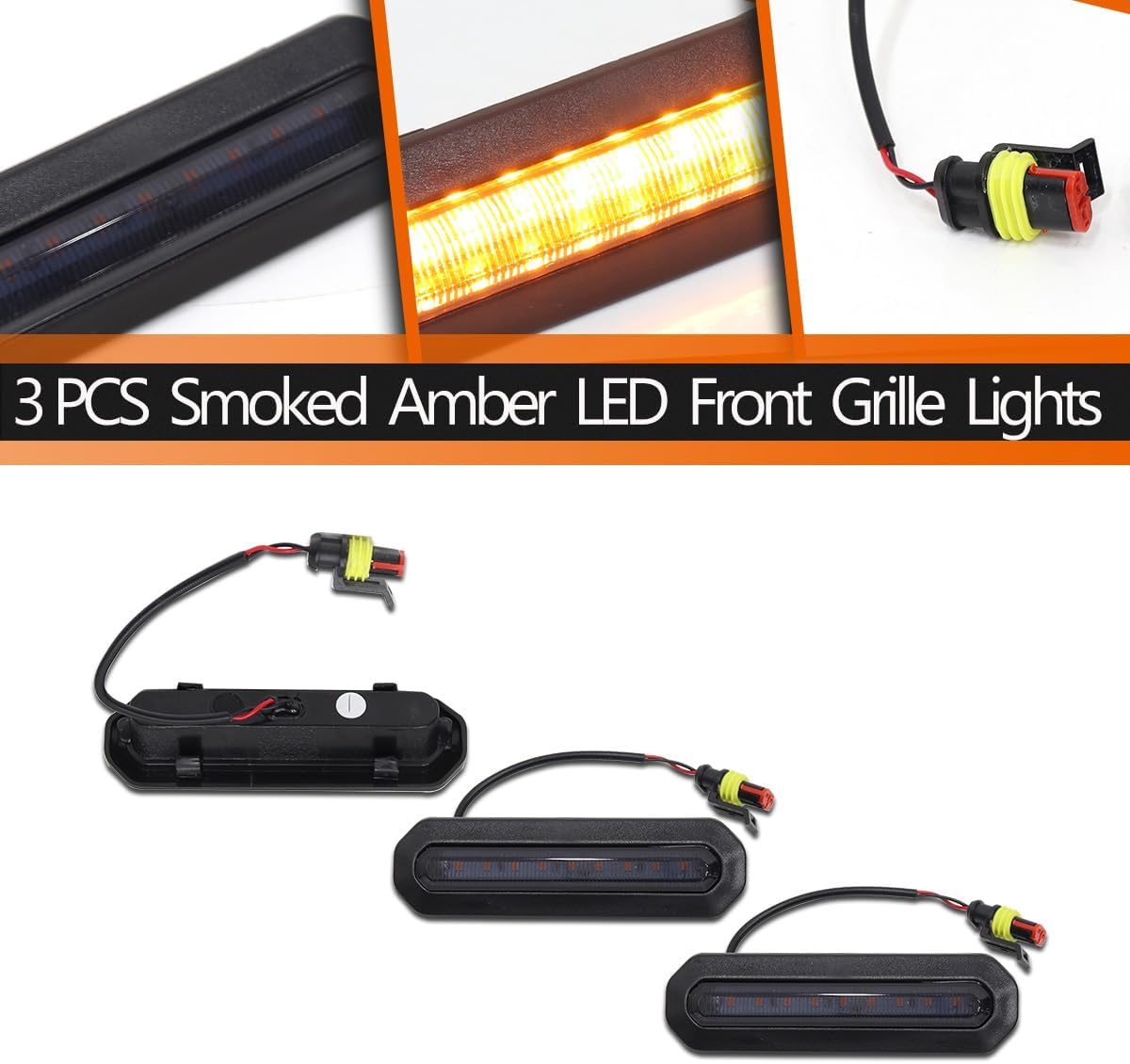 ✔️Plug and play Function: Fits onto the original grill mesh openings to emit super bright amber LED lighting.Easy design socket as plug and play installation, no drilling required