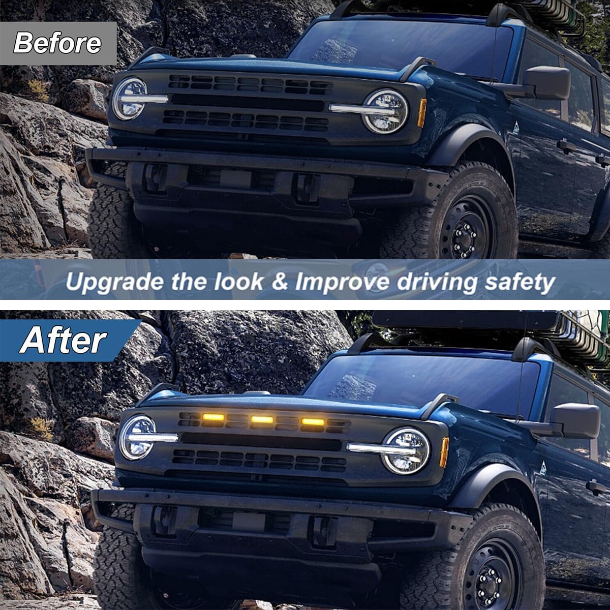 ✔️Animation:Give your Bronco upgraded white LED front grill lighting for a unique appearance as well as increased visibility, safety, and style at night!