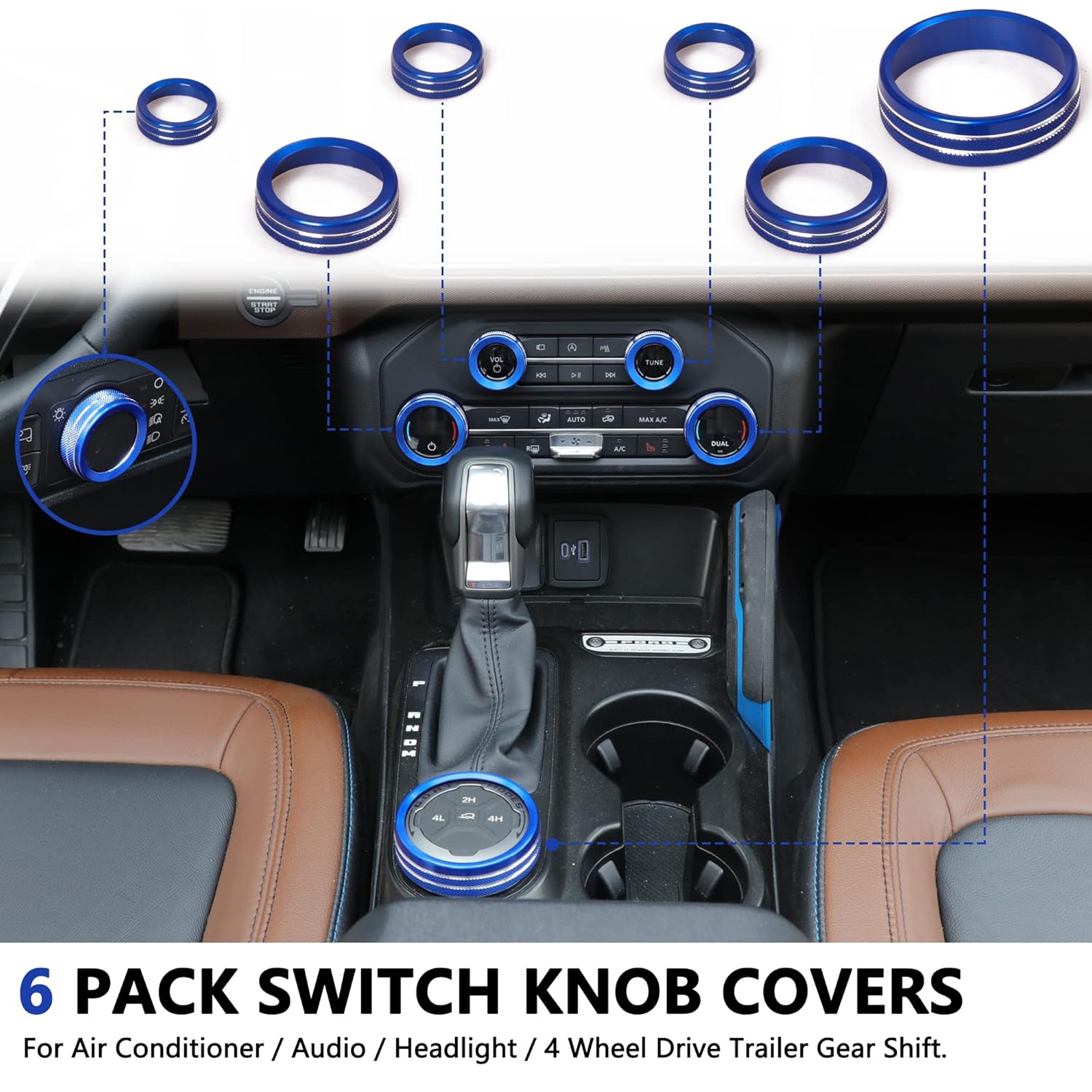 WHAT YOU GET: 6 pieces control knob trim sets for 2021 2022 2023 2024 2025 New Ford Bronco 2/4 Door