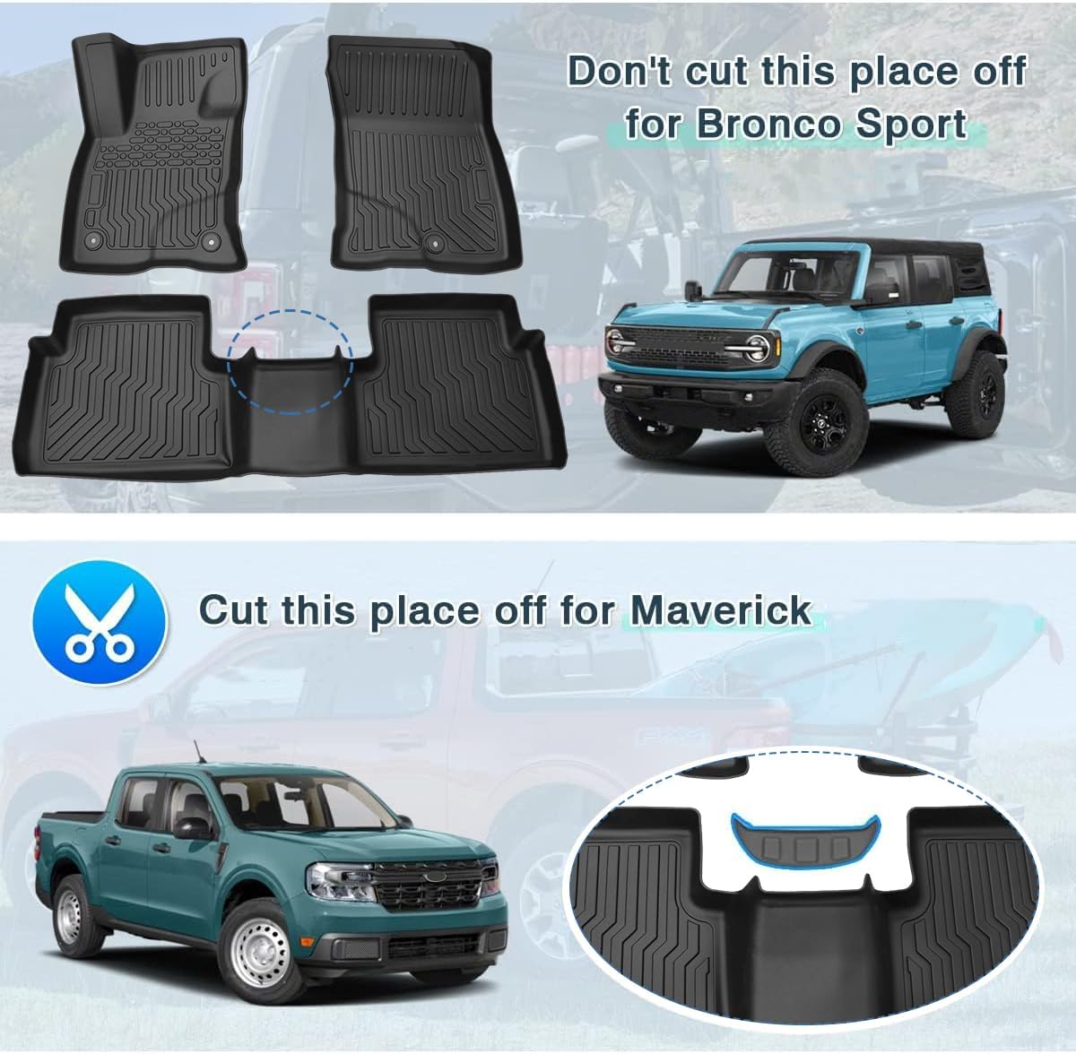 【FITMENT】 LZWELL’s products are fit for 2022 2023 2024 Maverick car floor mats, 2021 2022 2023 2024 Bronco Sport car floor mats. Please confirm that it is suitable for your vehicle model before purchase.