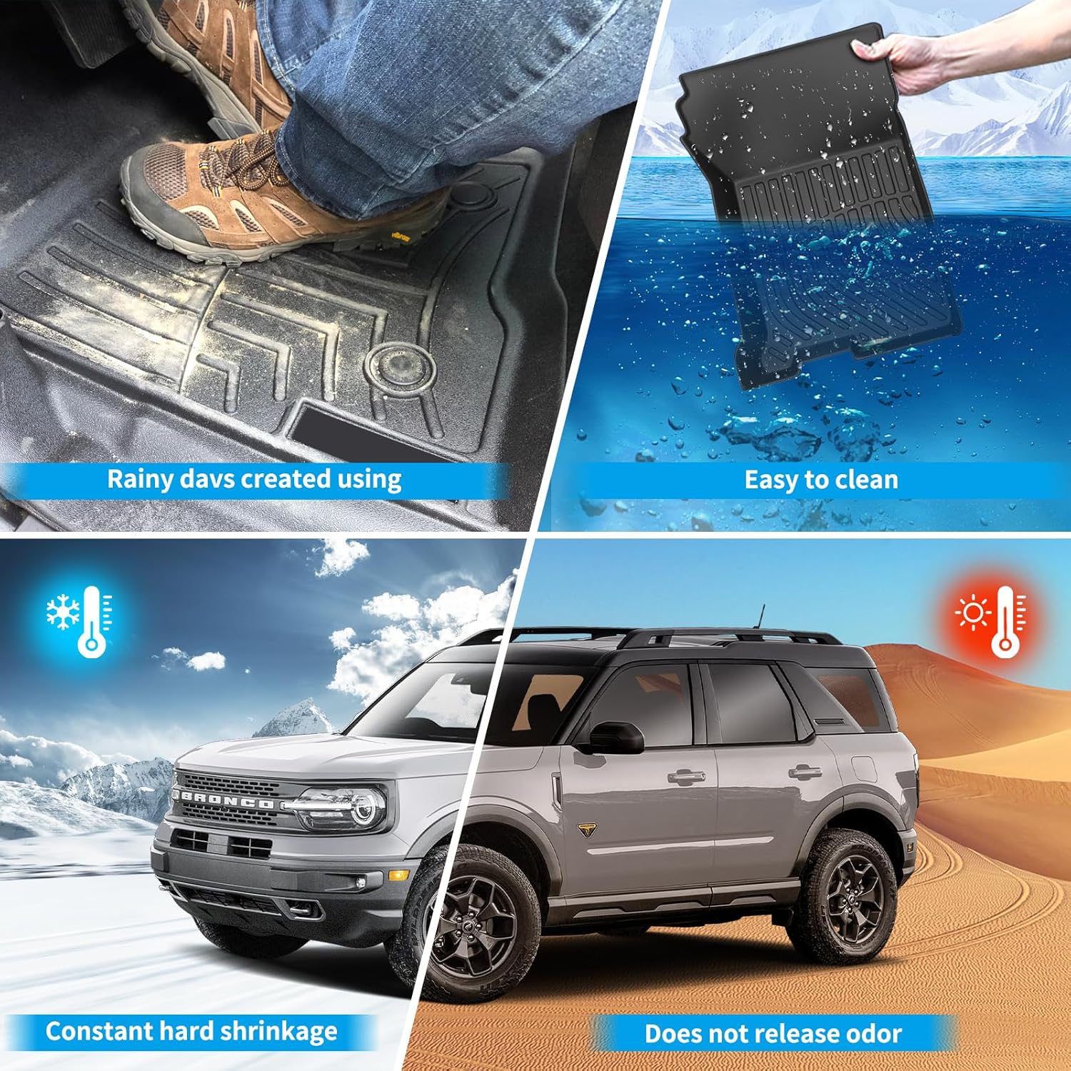 Application:These custom made floor mats are perfectly tailored to compatible with 2021-2024 Ford Bronco Sport 4-Door&2022-2023 Ford Maverick.