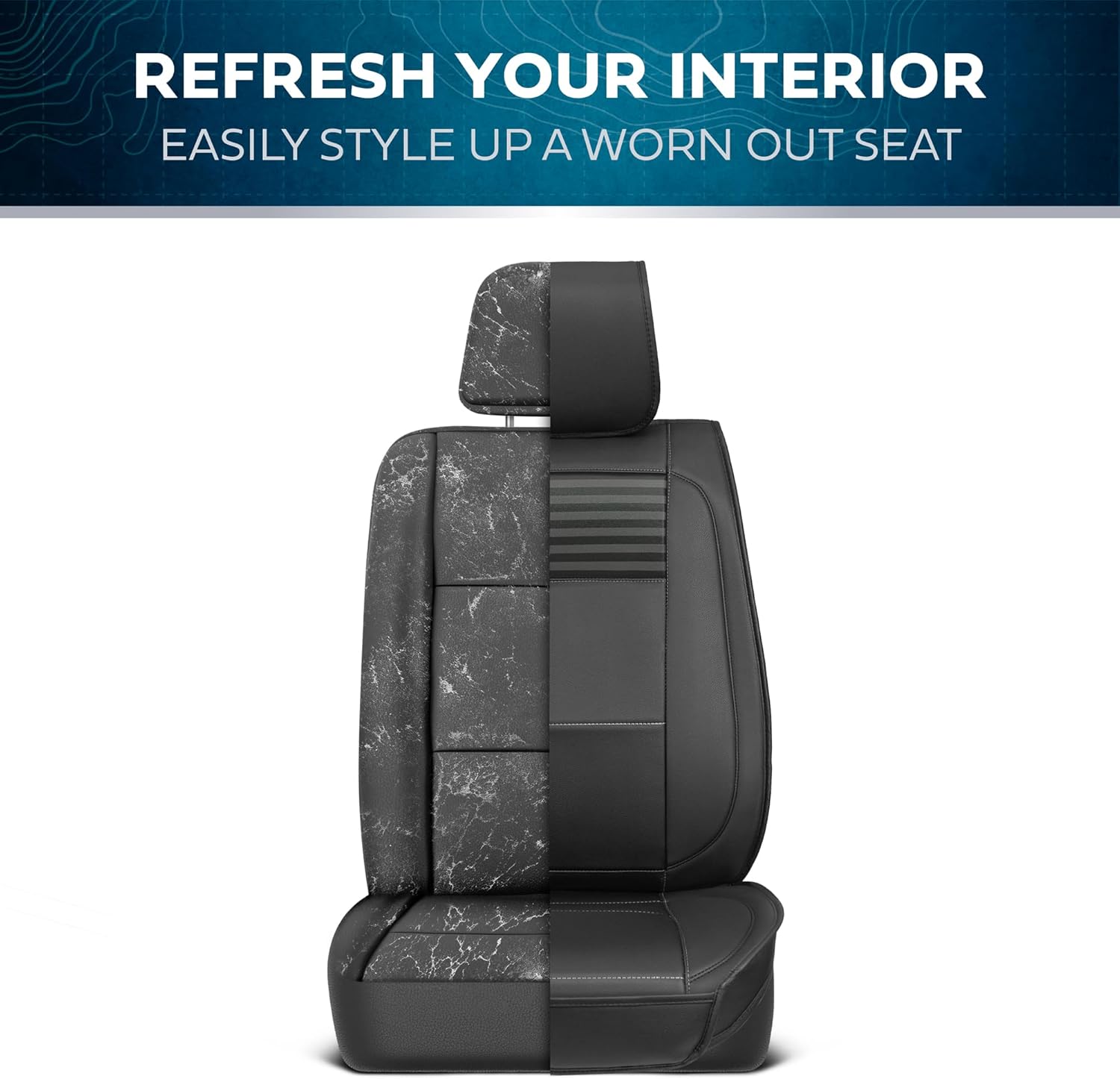 PREMIUM QUALITY: MotorBox Napa Leather Seat Covers are crafted with the finest materials, ensuring lasting durability and a luxurious appearance. Made from a blend of genuine Napa Leather and faux leather, these seat covers provide a stylish upgrade to your car’s interior, combining comfort and elegance effortlessly.