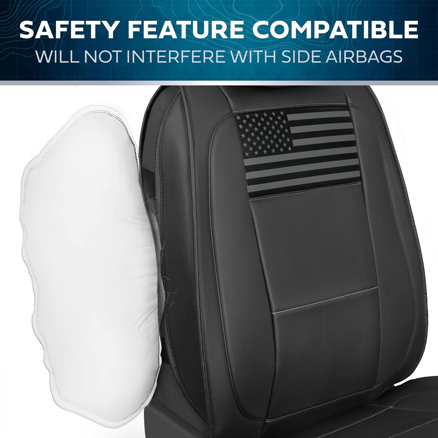 PATRIOT EDITION DESIGN: Patriotism runs deep with this USA Patriotic American Flag Car Seat Cover. Crafted with high-quality Napa leather, this US black flag print symbolizes America’s strength and pride. Perfect for Memorial Day and 4th of July celebrations, it offers an American-made touch to show off your American Pride anywhere you’re driving in these United States of America!