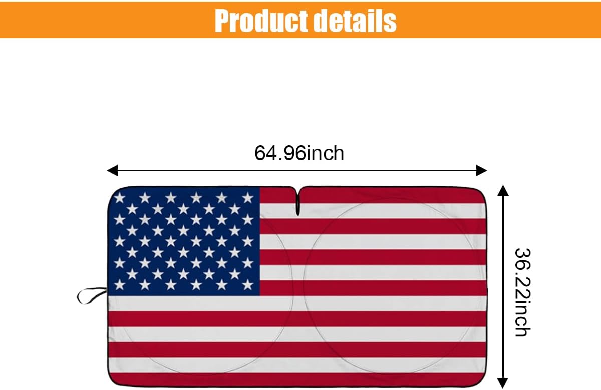 【High-Quality Material】:The car windshield American flag sunshade is made of high-density polyester and high-strength ductile wire material, sturdy structure, good sun protection, and protects your car interior from cracks and fading.