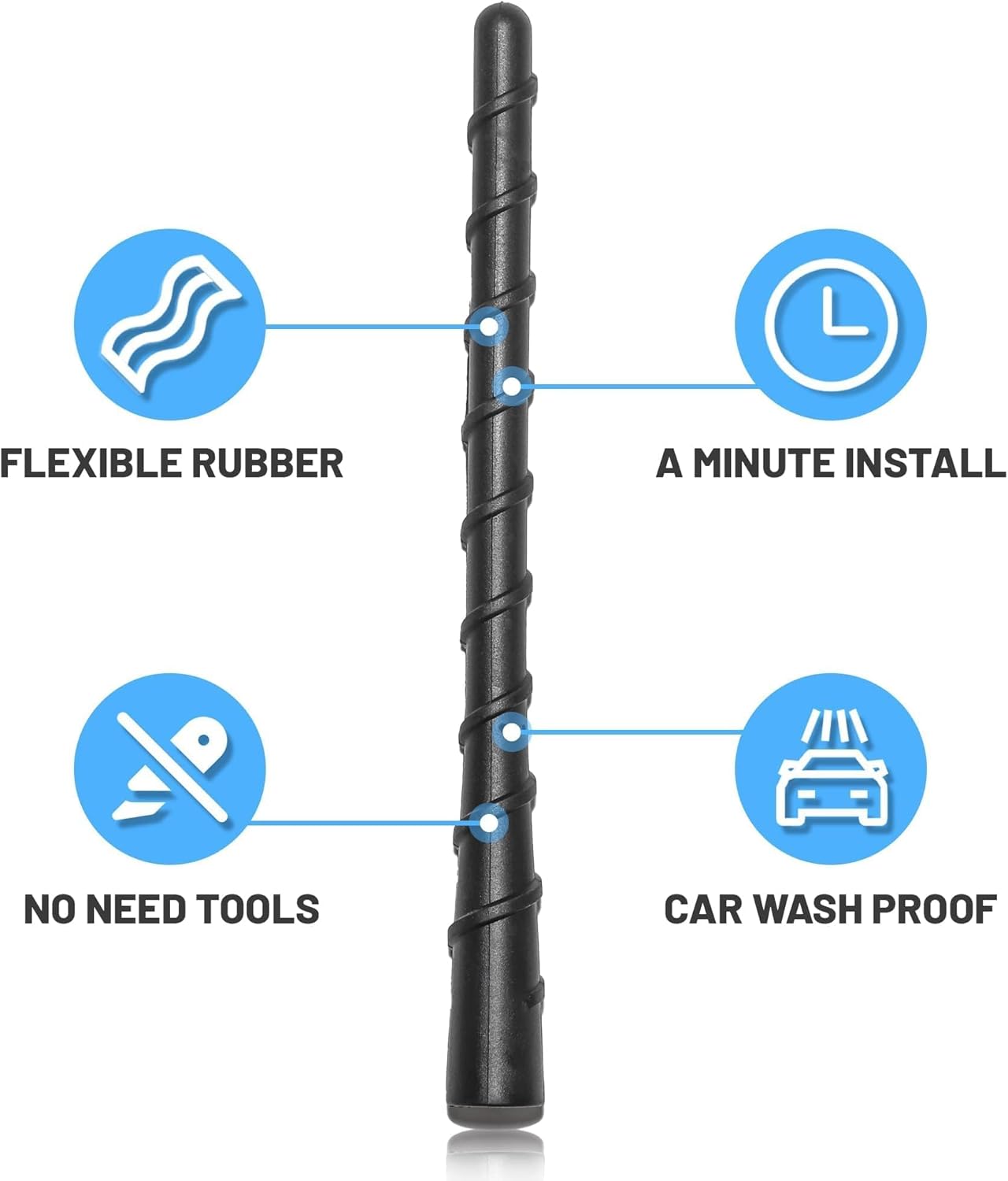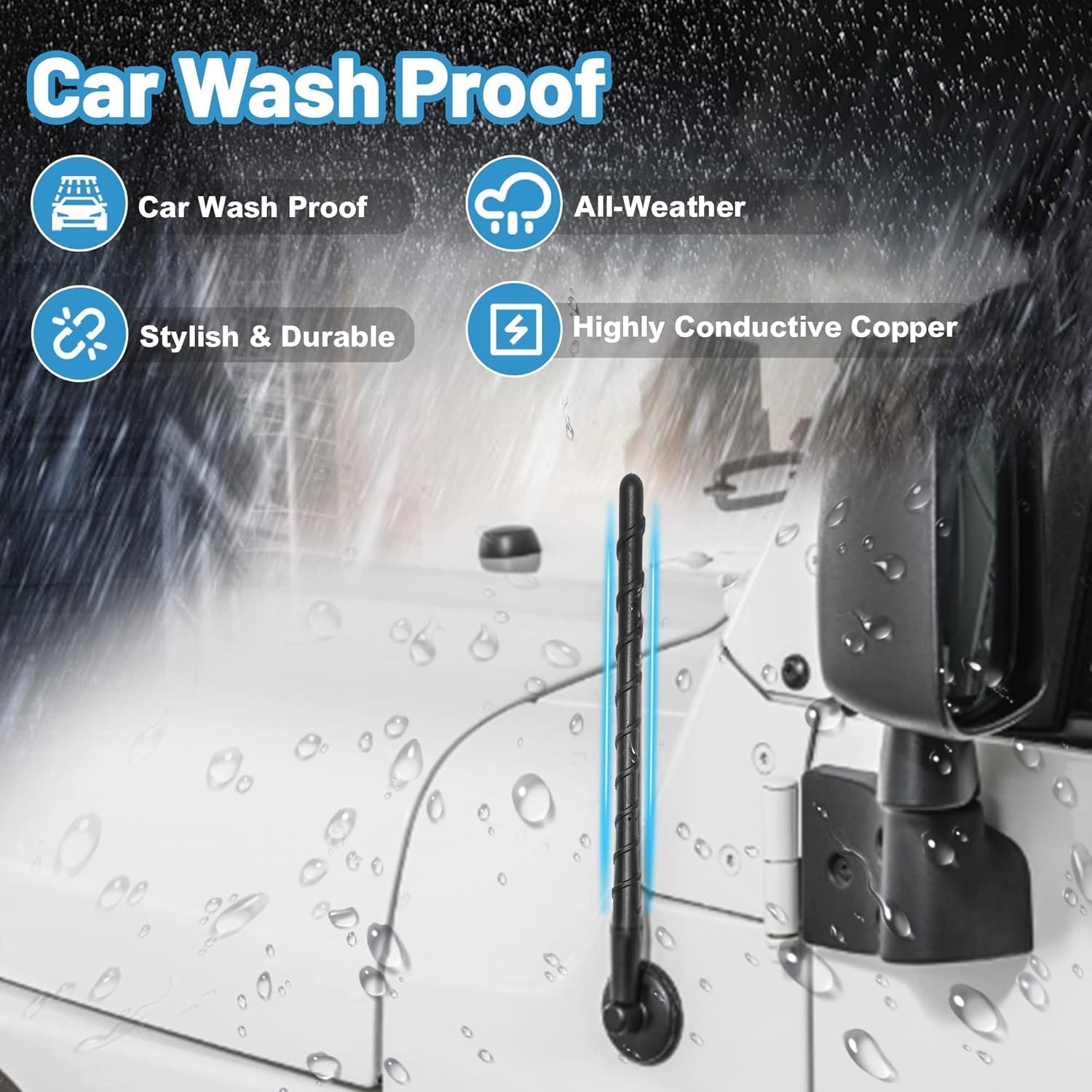 Car wash proof: The antenna mast is made of premium ABS plastic and can be used in extreme environments, no need to worry about the antenna breaking when washing the car