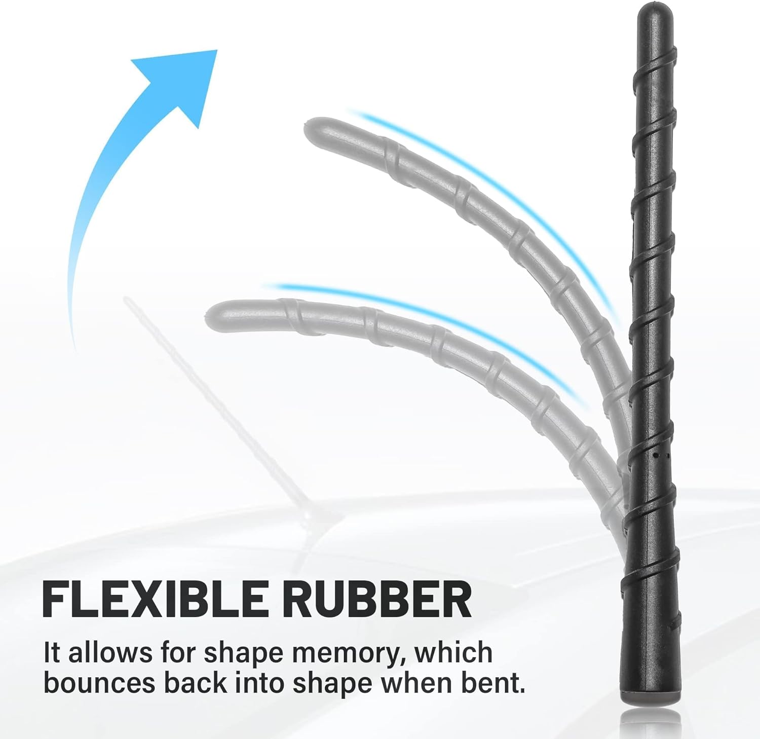 There is no need to worry about bending caused by car wash. Antenna is made of high quality material which is flexible and durable. It is resistant to corrosion and high temperature.