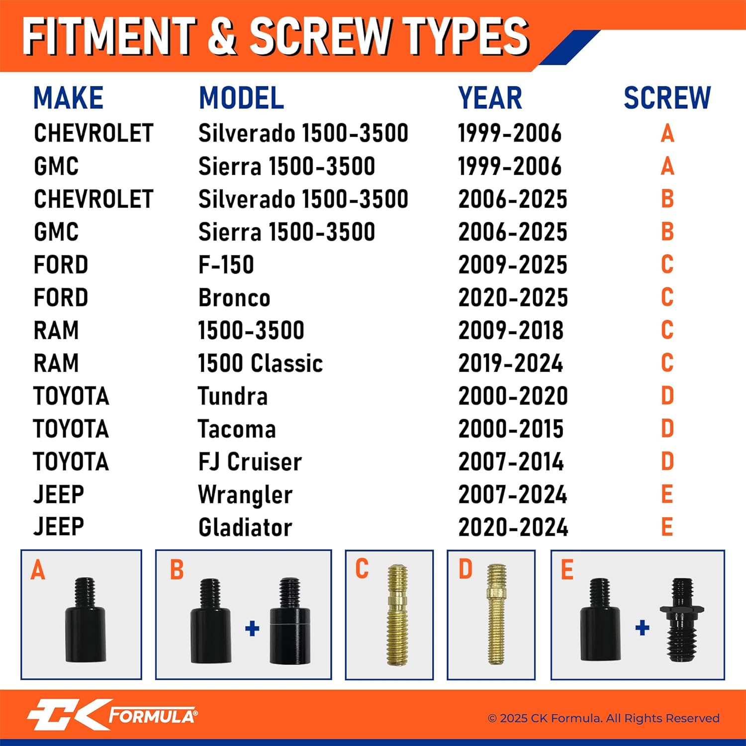 FITMENT 1: Designed to fit Year 2009 to 2025 F-150 F150 & RAM 1500 2009 to 2024 models. Comes with 1/4-20 threaded adapters, our antenna also fits Year 2020 to 2025 Bronco, Year 2007 to 2024 Jeep Wrangler, Year 2020 to 2024 Jeep Gladiator.