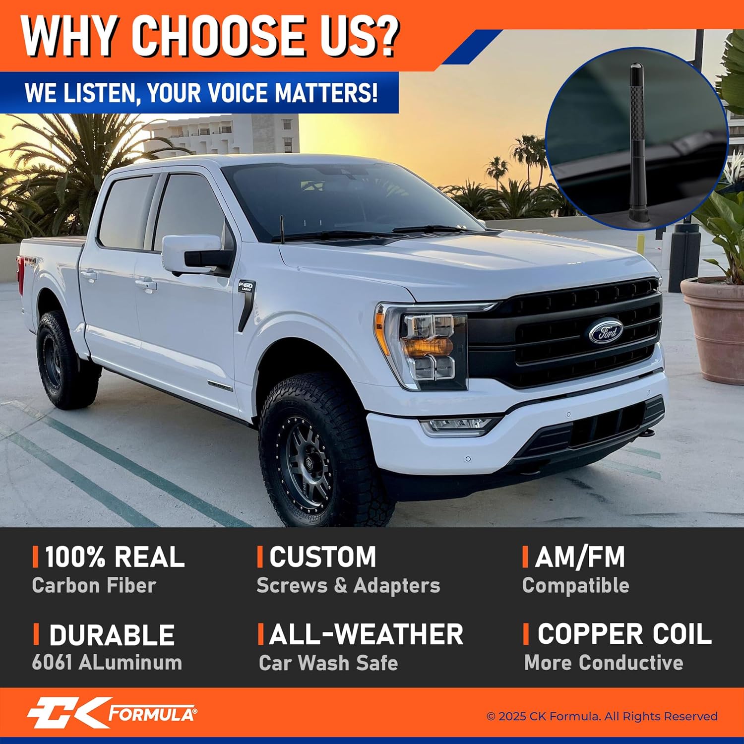 Anodized Carbon Fiber Antenna 5-Inch, Short Truck Antenna for Ford F150, RAM, Silverado, GMC Sierra, Tundra & More, Solid Billet Aluminum, Fade & Chip-Resistant, Car Wash Safe, Car Replacement Antenna