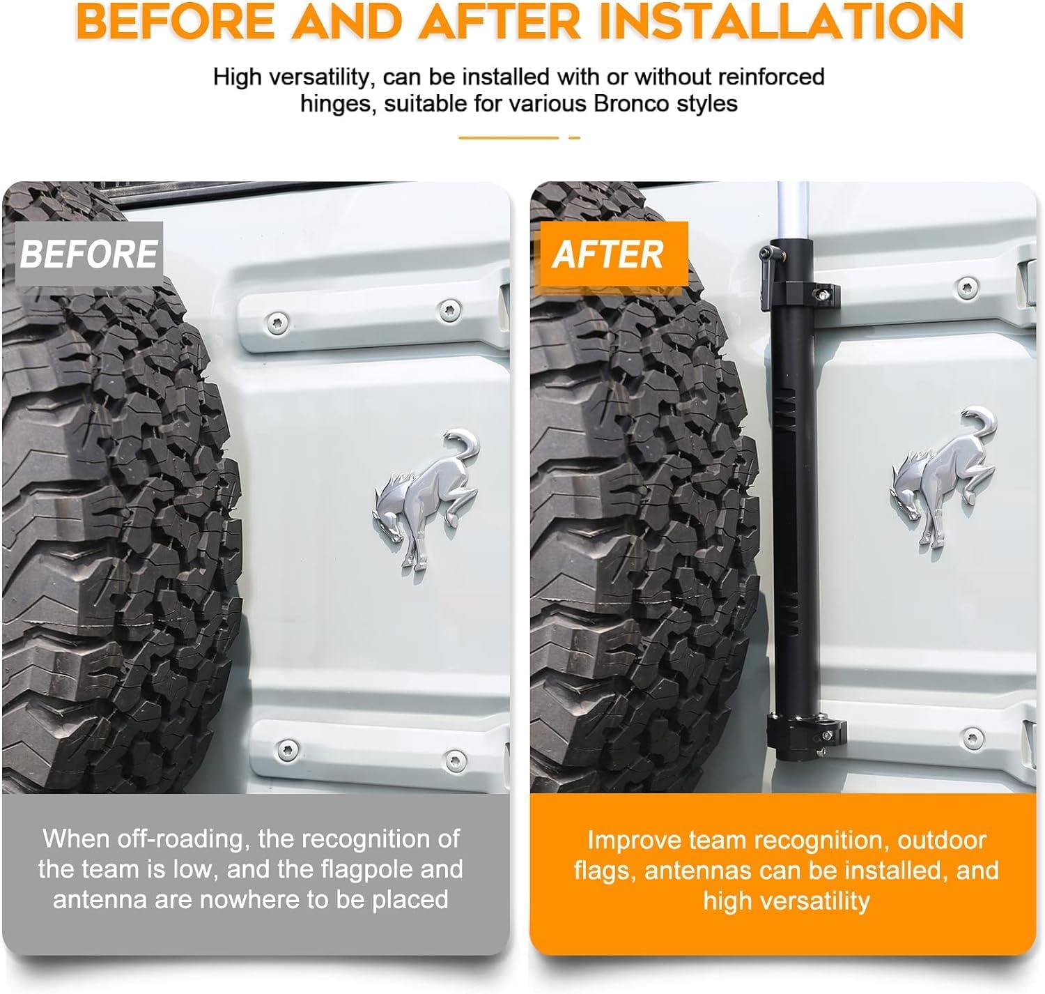 ★2 in 1 bracket:can be used as an antenna Holder Bracket or as a flagpole bracket. The multi-function bracket make the Ford Bronco look cleaner and simpler
