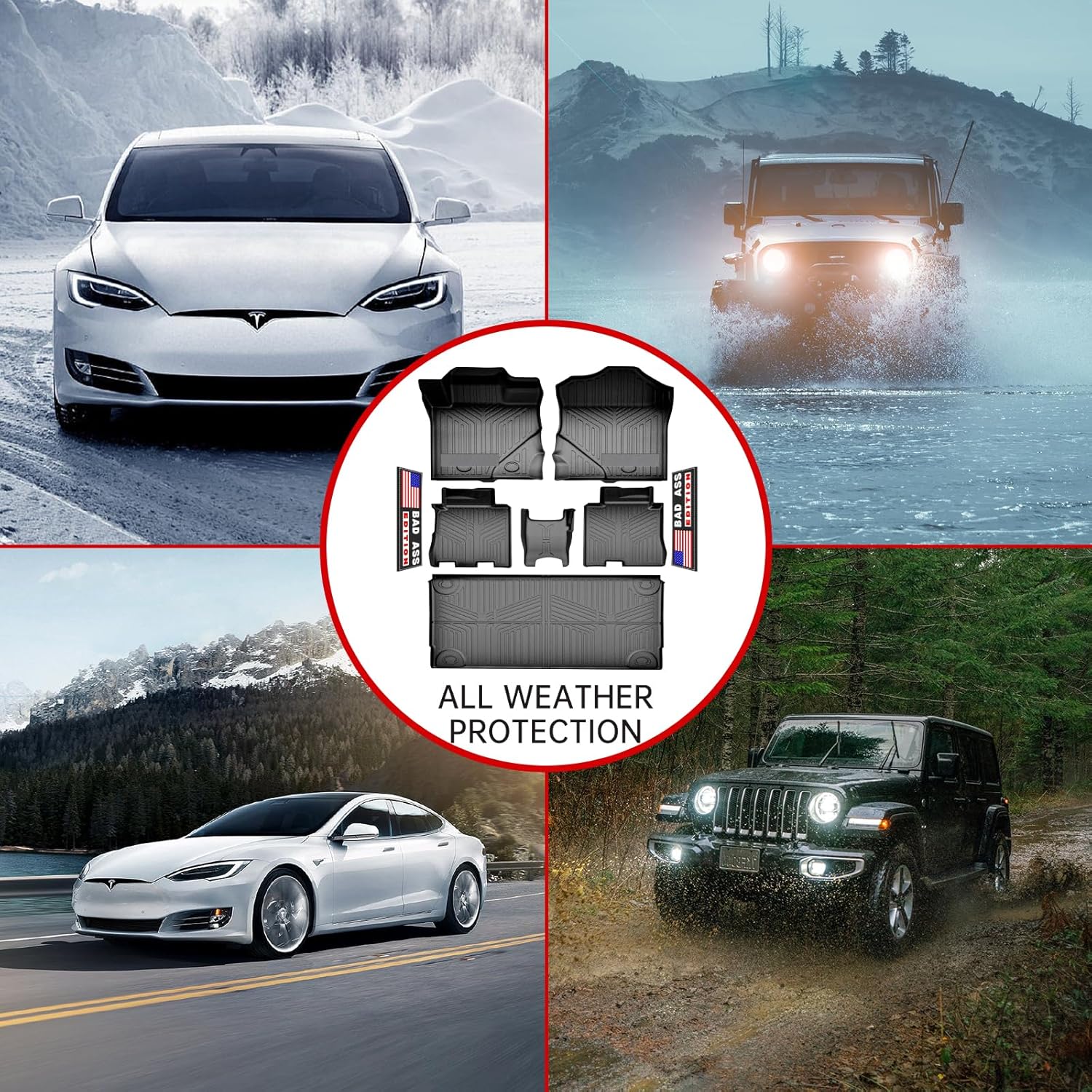 Anti-Slip 8Pcs All-Weather Car Floor Mats for 2021-2023 Ford Bronco 4 Door (Not for Bronco Sport) | 1st 2nd Row and Trunk Mat w/Weather Strips | Rubber Floor Liners for Winter, Ski, Hunting, Camping