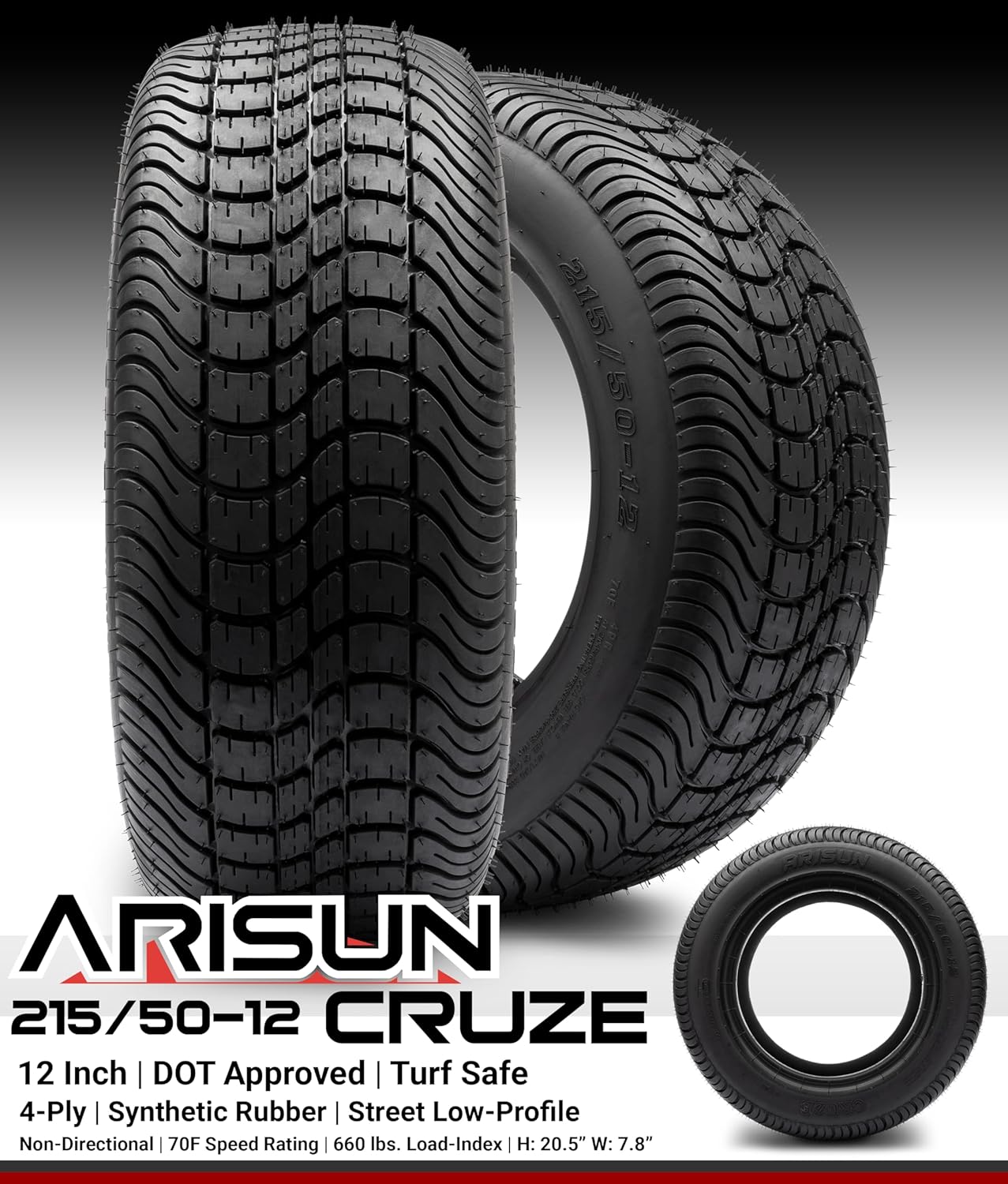 Arisun Cruze 215/50-12 DOT Golf Cart Tire Street Low Profile (4-Ply) – Set of Four
