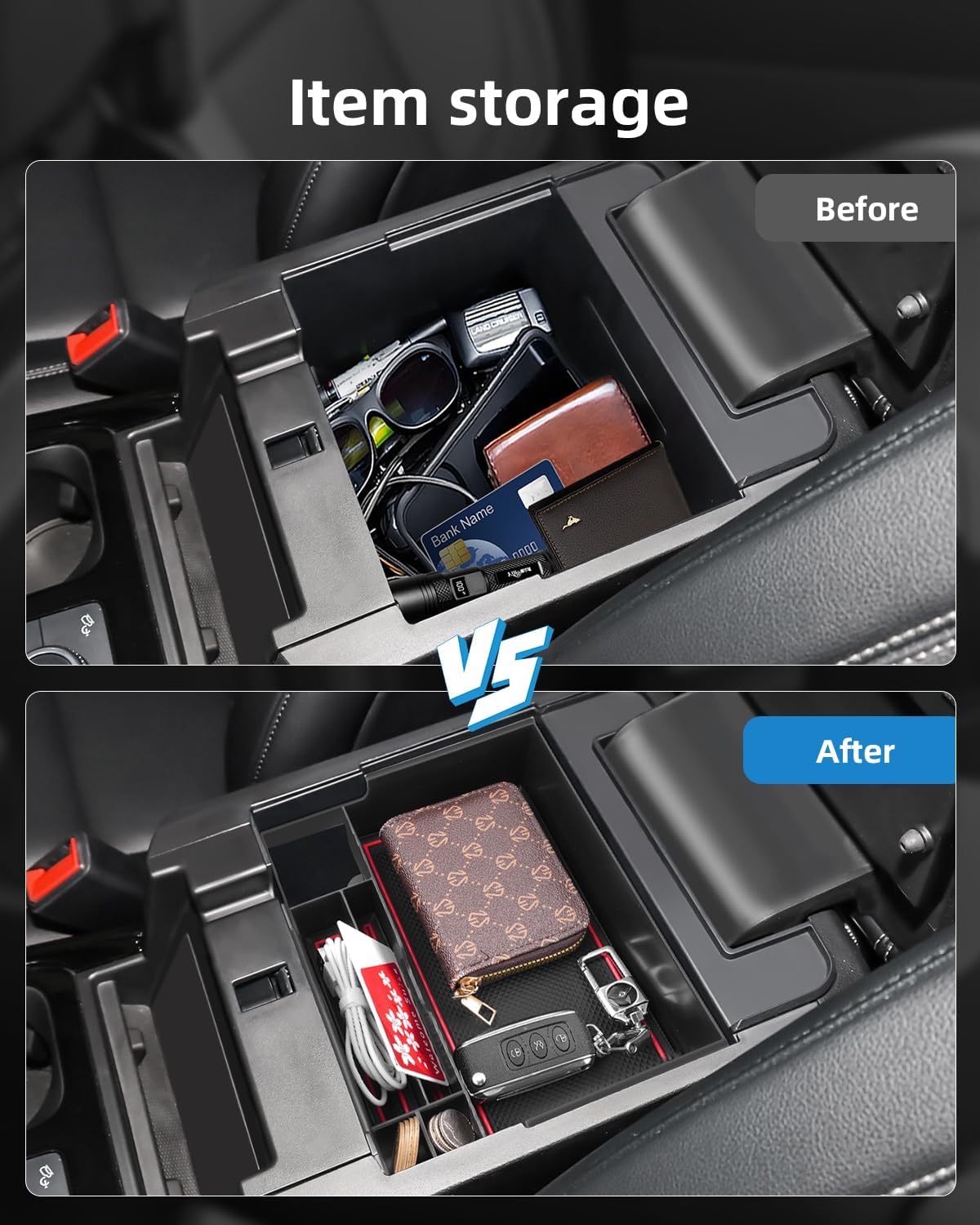【Adds Useful Storage Space】Armrest organizer fit would allow you to use the original organizer allowing for “double center console” setup, so that you can put lesser-used items below and the things we need more frequently on top of this tray, a good way to organizer your center console