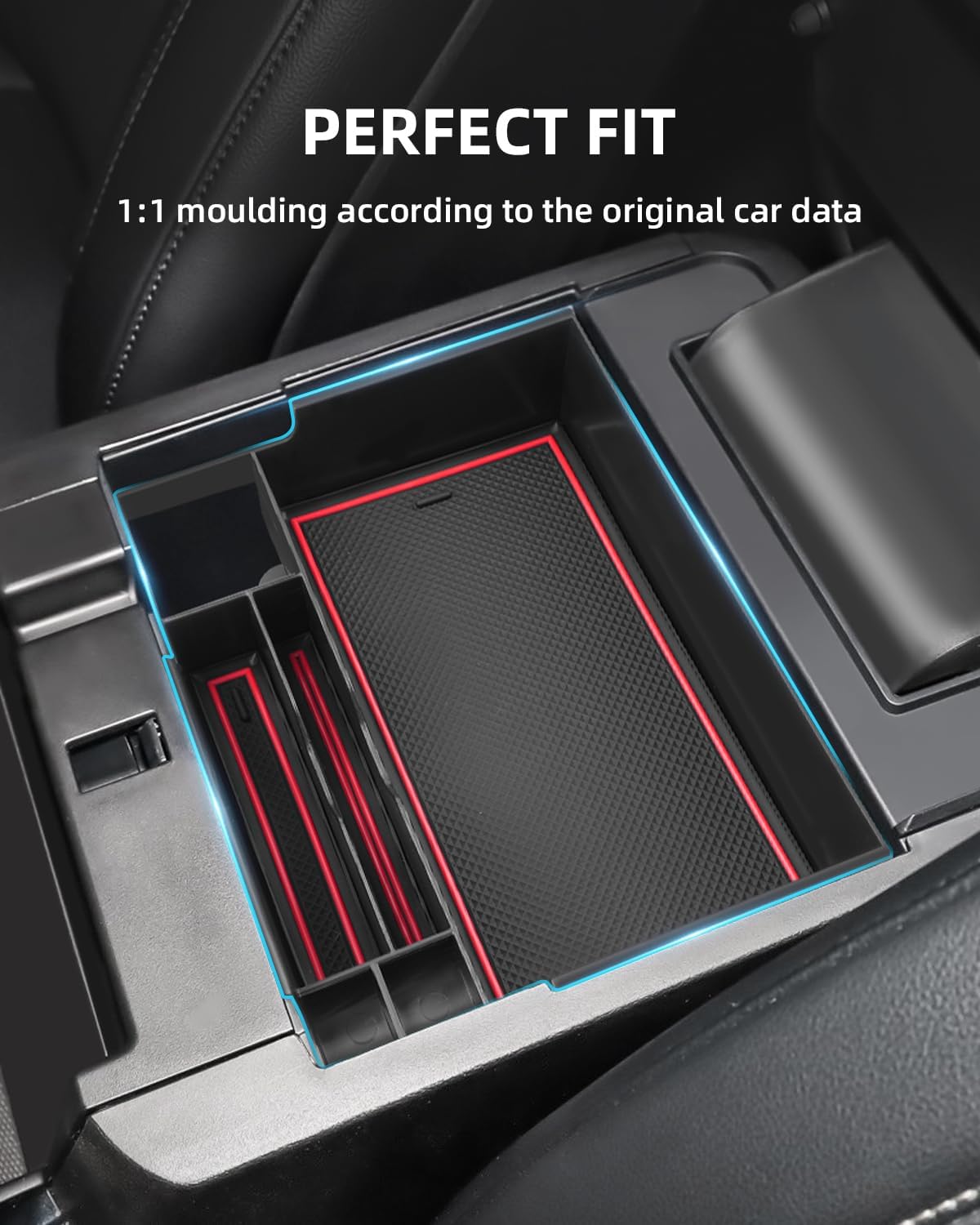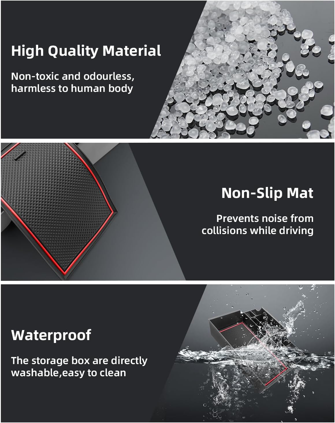 【Install In 10 Seconds, No Tools Needed】 Center Console Organizer easy to put on and pull out, not interfere with closing and opening of the lid. Rubber mats are easily removable for cleaning