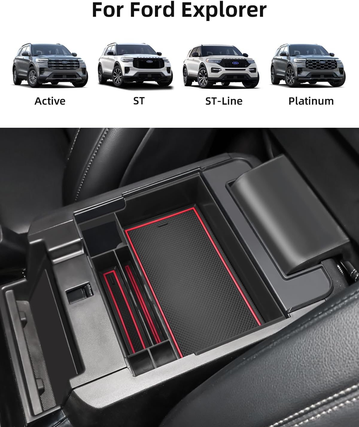 【Armrest Organizer for Ford Explorer】Armrest tray custom fit for 2025 2024 2023 2022 2021 2020 Ford Explorer Active/ST-Line/Platinum/ST, it does not affect the closing of the armrest cover