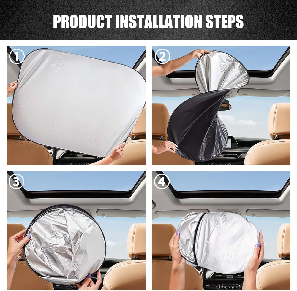 The car sunroof sunshade can block the direct sunlight and UV rays, reduce the temperature inside the car, avoid the car interior fading and cracking, and the foldable frame is convenient for storage, which enhances your driving experience.