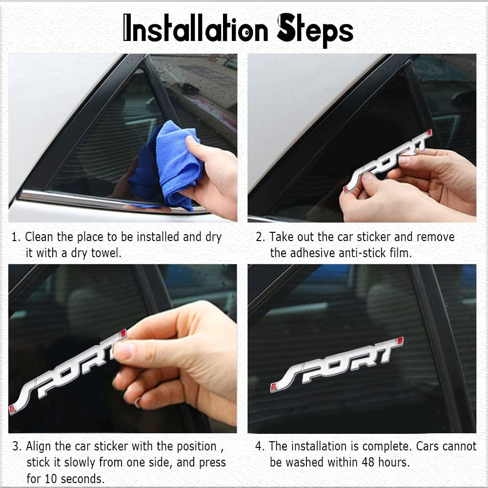 [Easy to install]: 1. Clean the position to be pasted and keep it dry. 2. Peel off 3M and align it with the position to be pasted. 3. Press for about 1 minute to ensure that the 3M adhesive on the Sport Car Emblem is well bonded