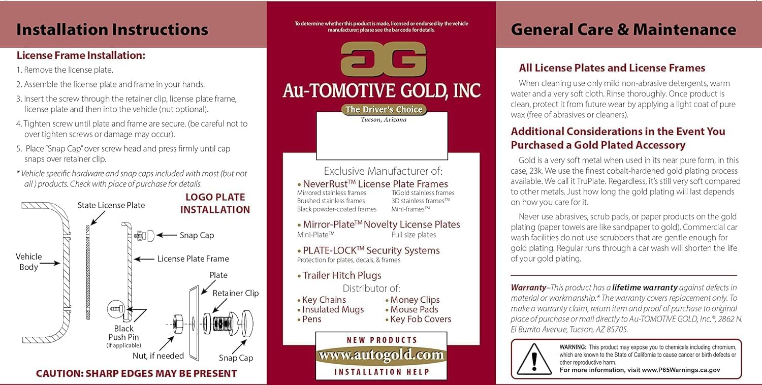 Laser etched plate featuring highly detailed logo designs etched onto a brushed stainless steel or black powder-coated plate. Each plate includes vehicle specific hardware and matching theft deterrent caps concealing unsightly hardware. Proudly manufactured in the USA and backed by a lifetime warranty against flaws in materials and workmanship. Product Dimensions: 6 Inches (Height) x 12 Inches (Width)