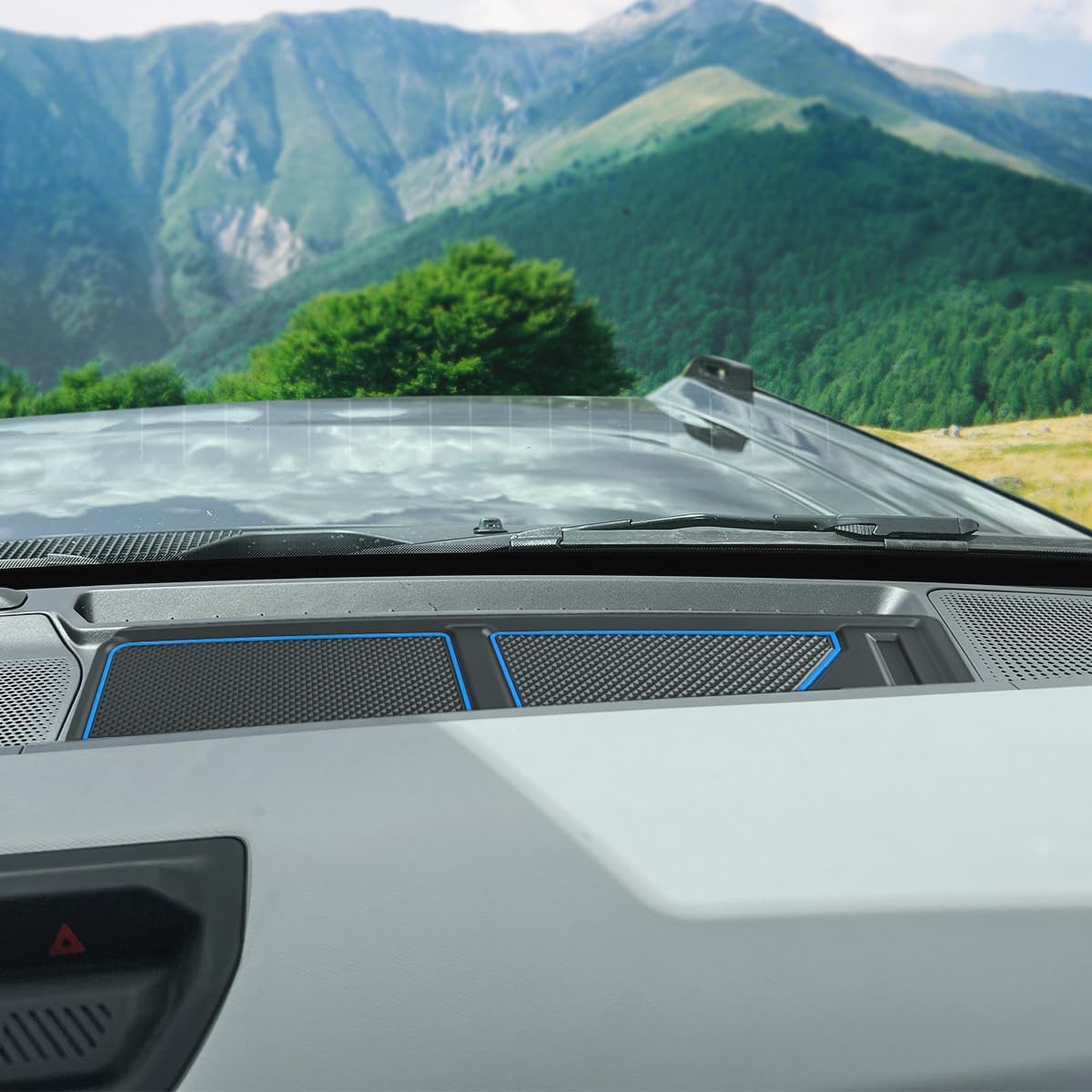 Auovo Dash Cover Tray Compatible with Ford Bronco Accessories 2025 2021 2022 2023 2024 Anti-Slip Silicone Dashboard Compartments Mat fit Bronco 2/4-Door Interior Dash Pad Liners 2-pc Set (Blue Trim)