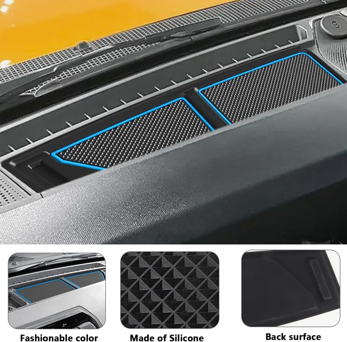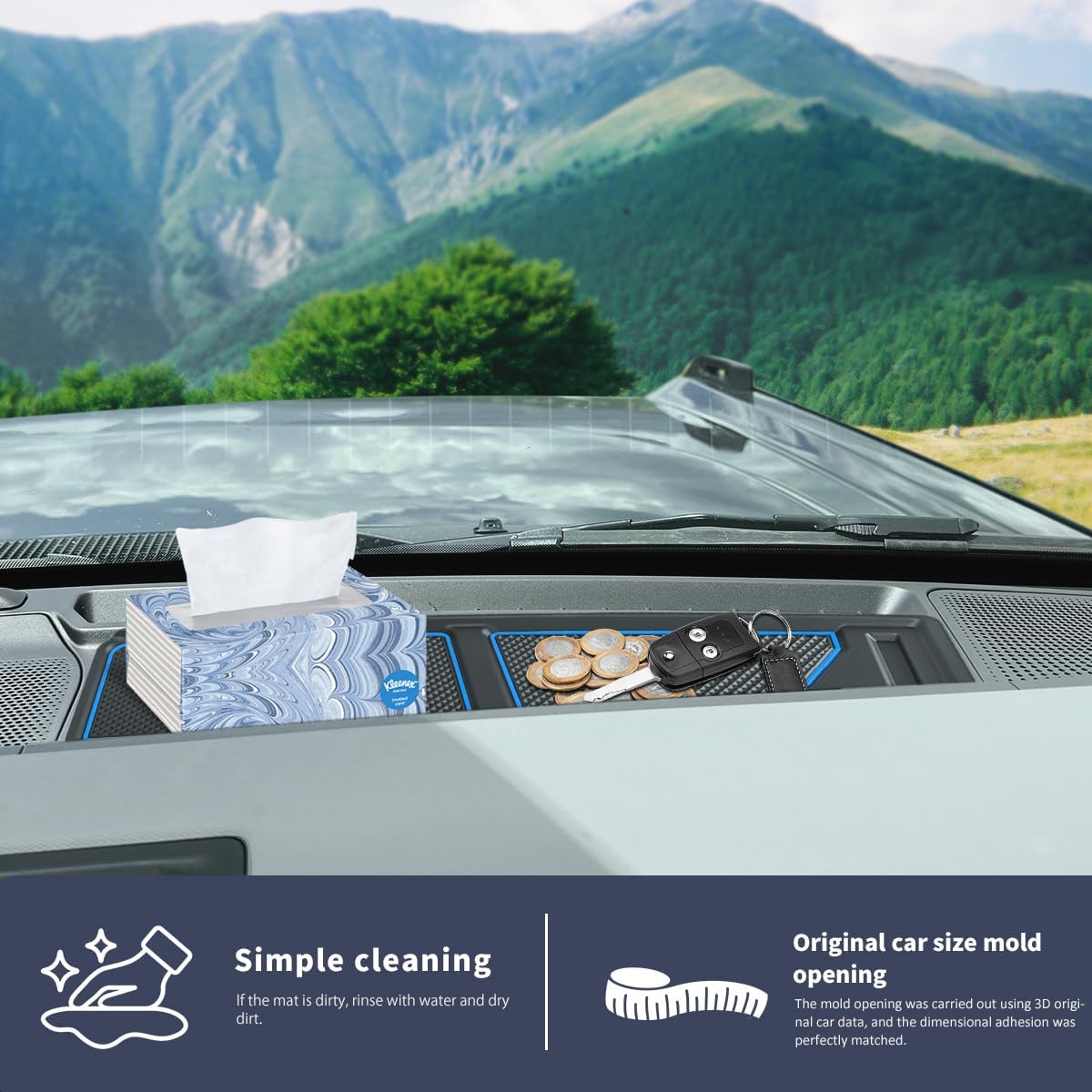 4. Easy to install & Remove to clean. -2pcs/set. Fit perfectly and do not move around. Simply place the Dash Pad Liner on the dashboard of 2024 2023 2022 2021 for Ford Bronco. The car Dash tray mat collects and holds crumbs and dust to prevent dashboard surface from getting dirty. Easy to remove it to clean with water.
