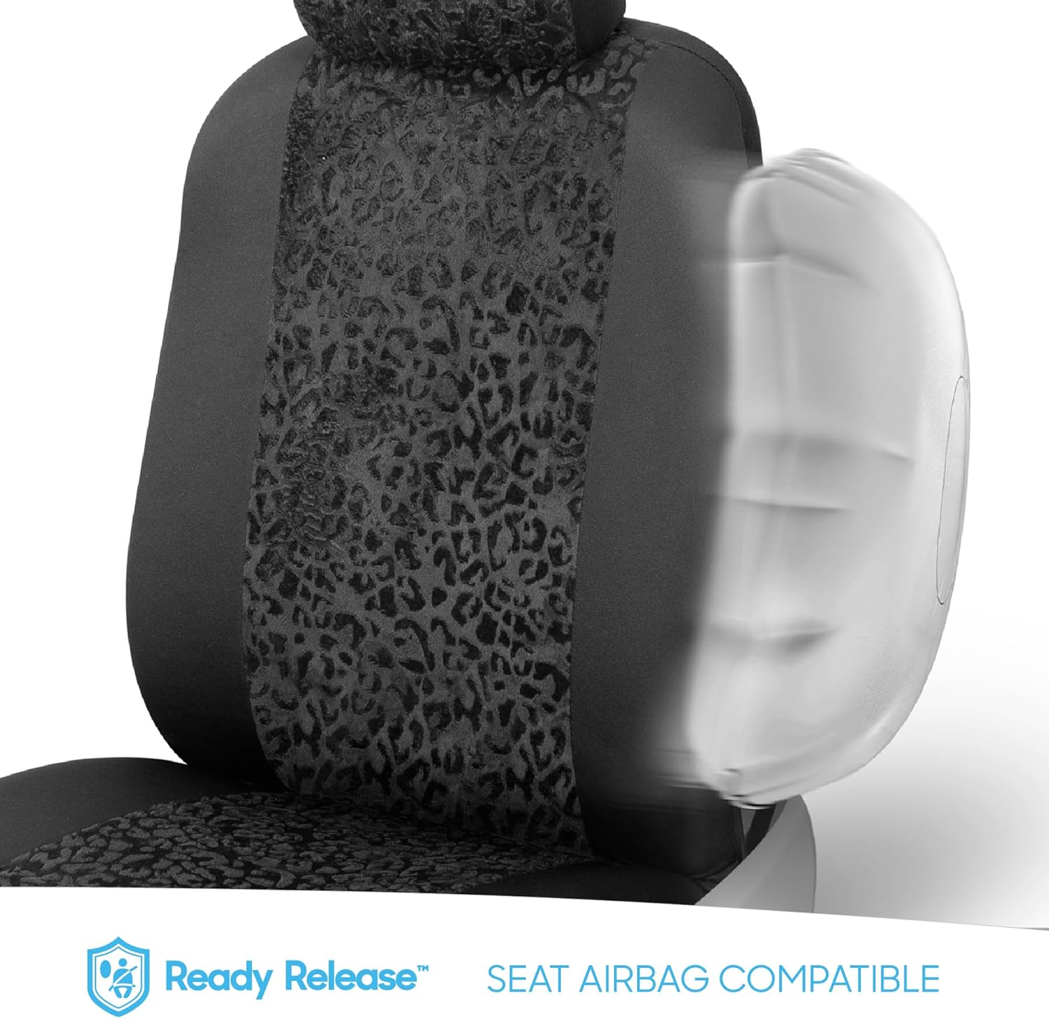 BDK Black Leopard Car Seat Covers for Front Seats, Animal Print Front Seat Cover Set with Matching Headrest, Sideless Design for Easy Installation, Fits Most Car Truck Van and SUV, (Pack of 2)