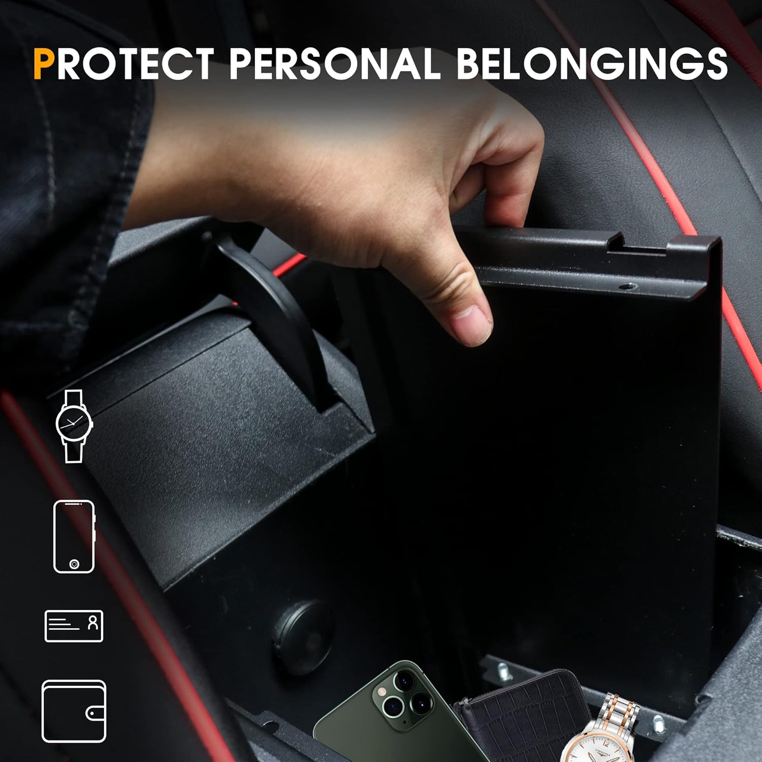 PROTECTING PERSONAL BELONGINGS: Adopt 3-digit cipher and anti-theft lock core design, protects your privacy and belongings, even you remove the car doors or roof. Safely store your wallet, phone, watch and other valuables