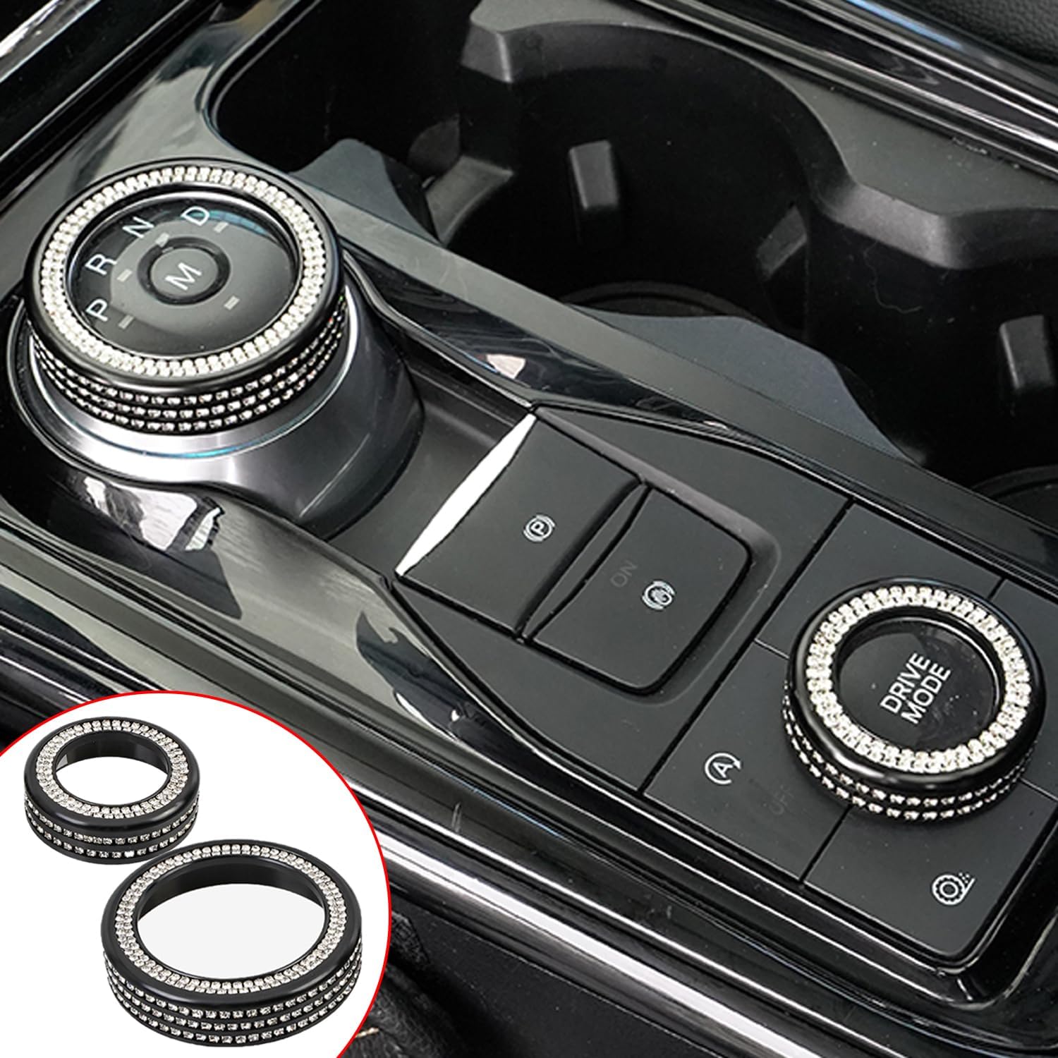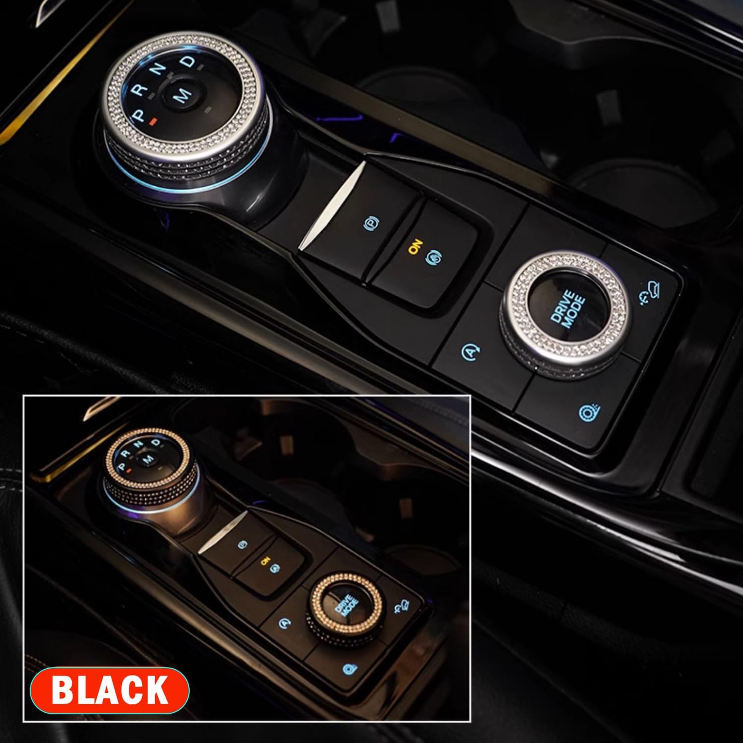 Bling Center Console Button Rings Cover for Ford Explorer ST Sport XLT – Drive Mode & Gear Shift Knobs, Perfect Fit – Enhance Car Interior, for Ford Explorer 2020 to 2025 (Black)