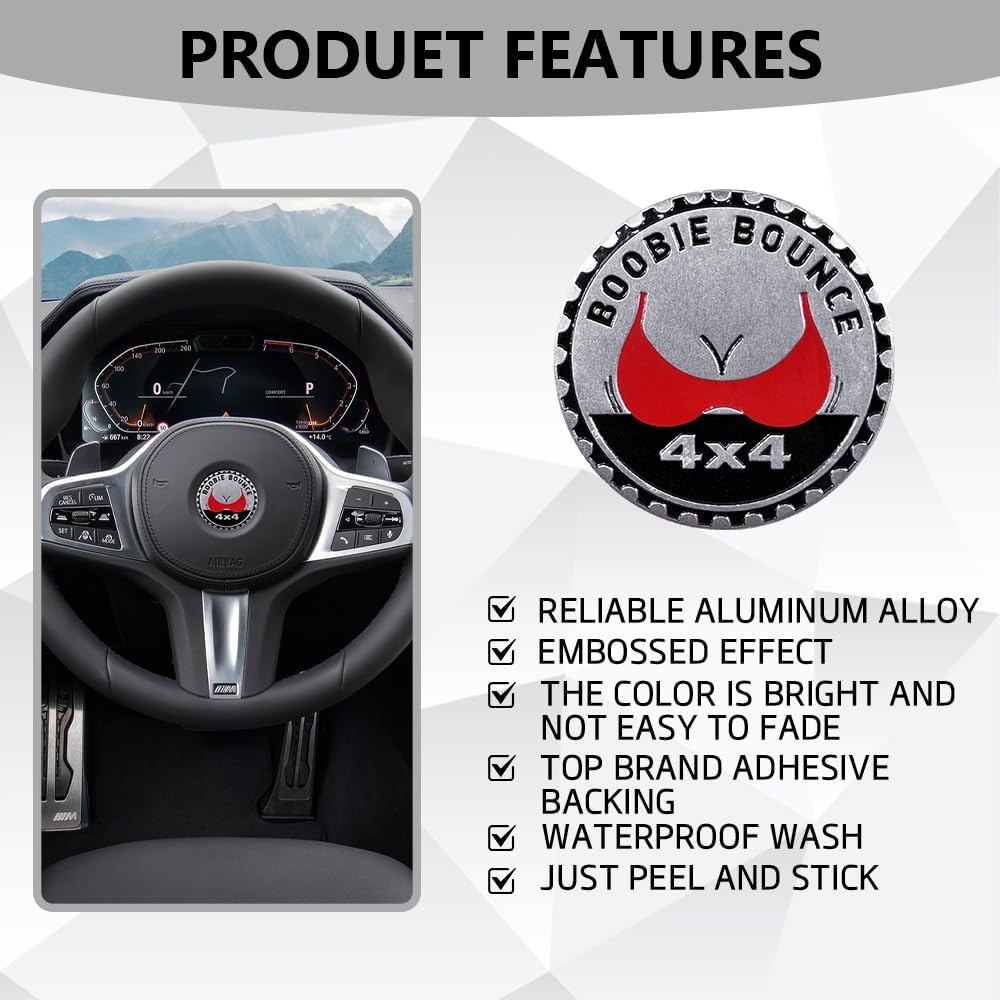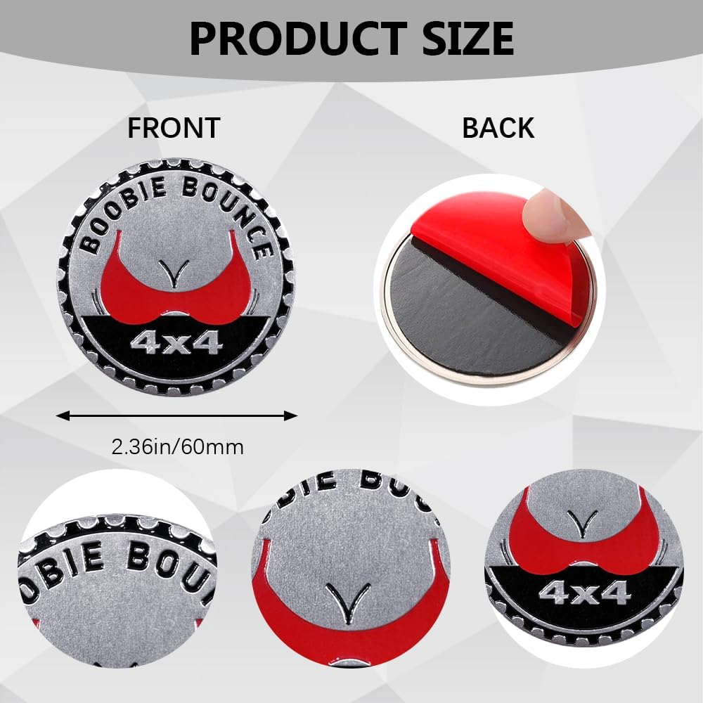 Booble Bounce Badge Rated Car Emblem, Car Exterior Emblems Badge, 4 x 4 Metal Automotive Badge, 3D Round Metal Car Badges Emblems Car Badge Decals Stickers for Vehicle Truck (Boobie Bounce)