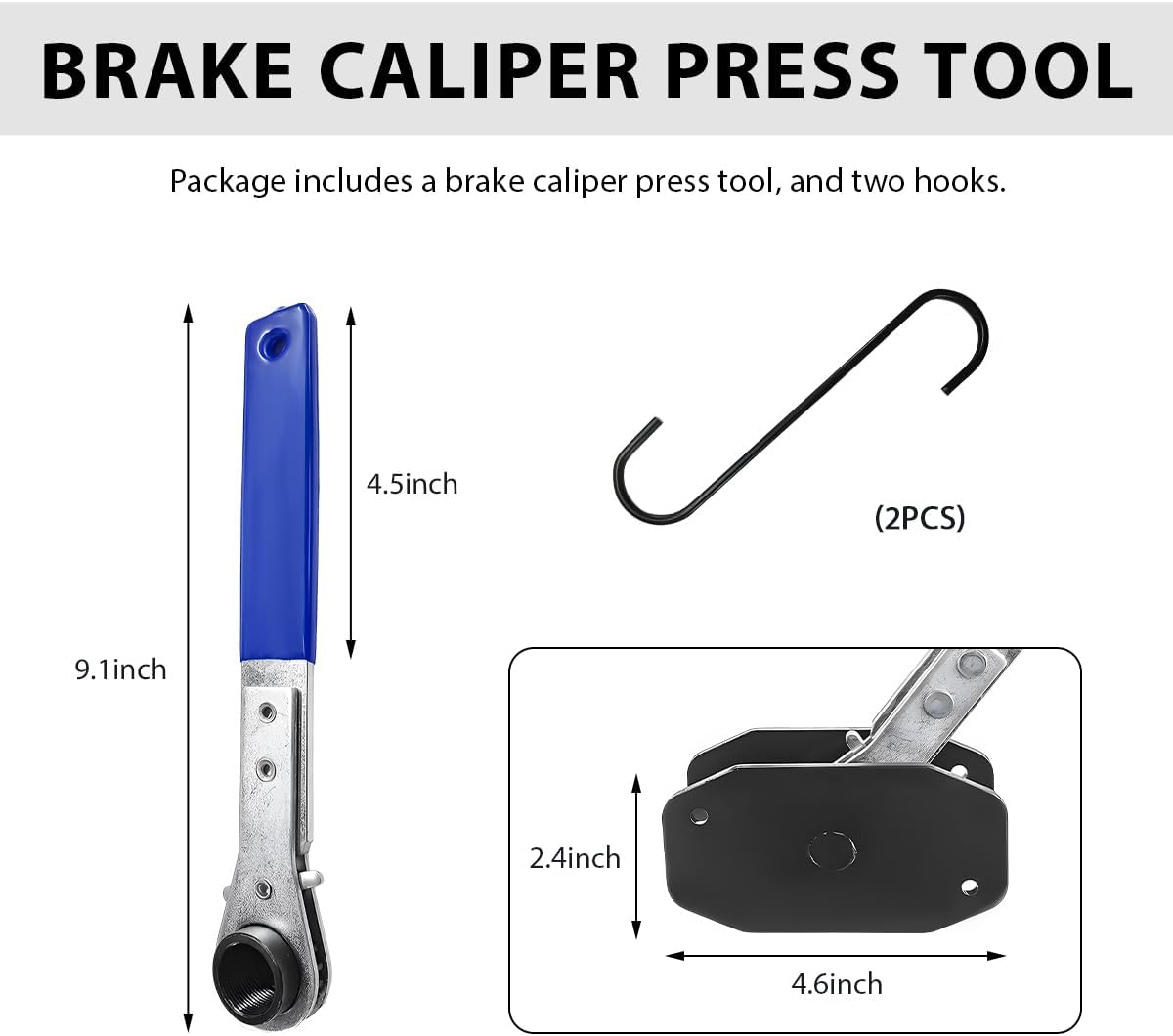 Package Includes: 1 Brake Caliper Press Tool, 2 Caliper Hooks