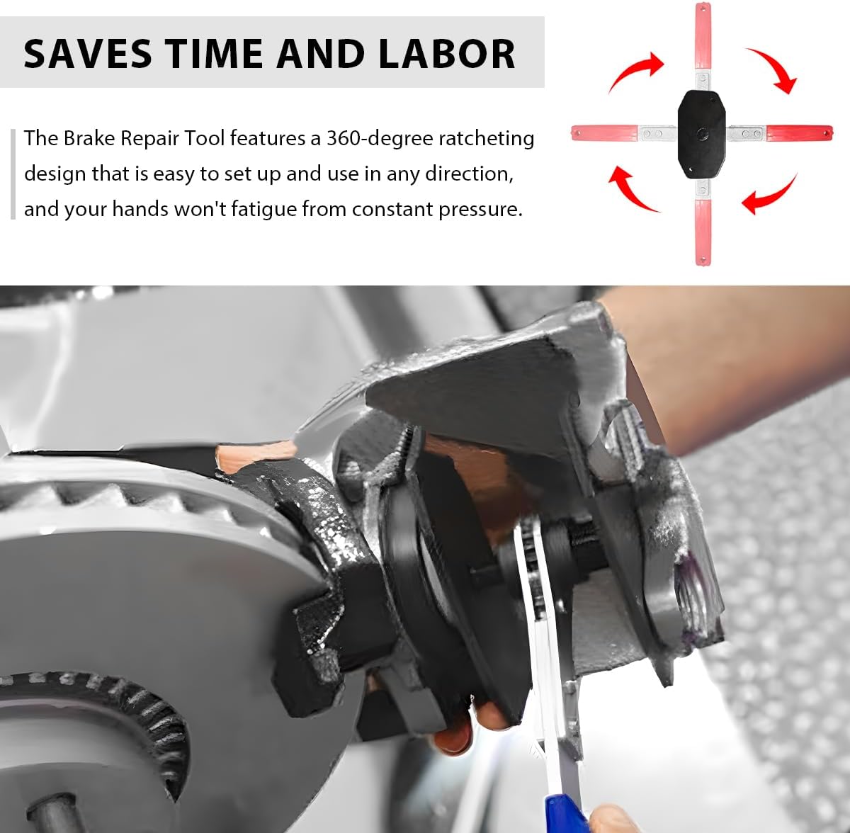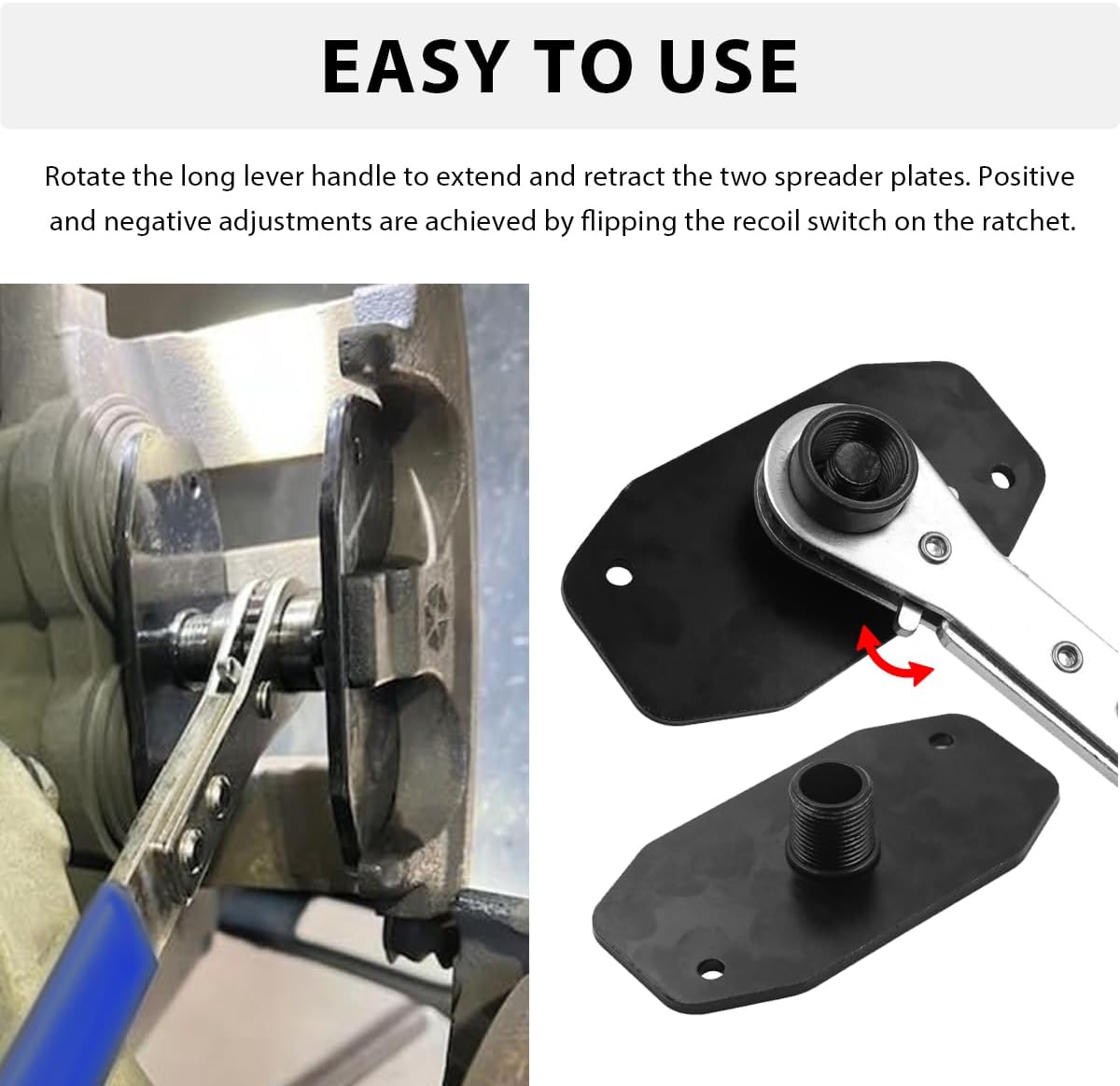 Practical Function: The tool simplifies caliper piston retraction by maintaining both plates parallel while evenly distributing pressure. It ensures precise piston alignment to create space for new brake pads. This minimizes damage caused by uneven force and helps avoid caliper cracking