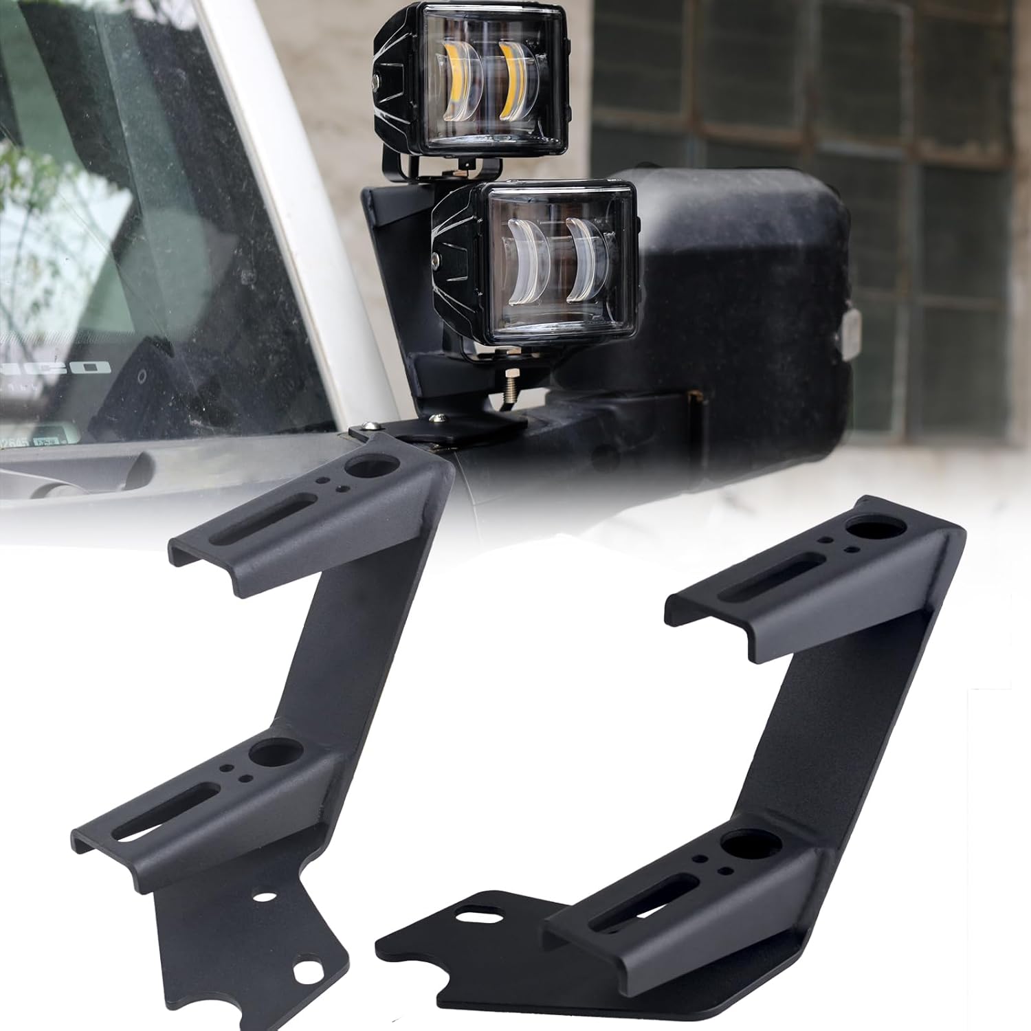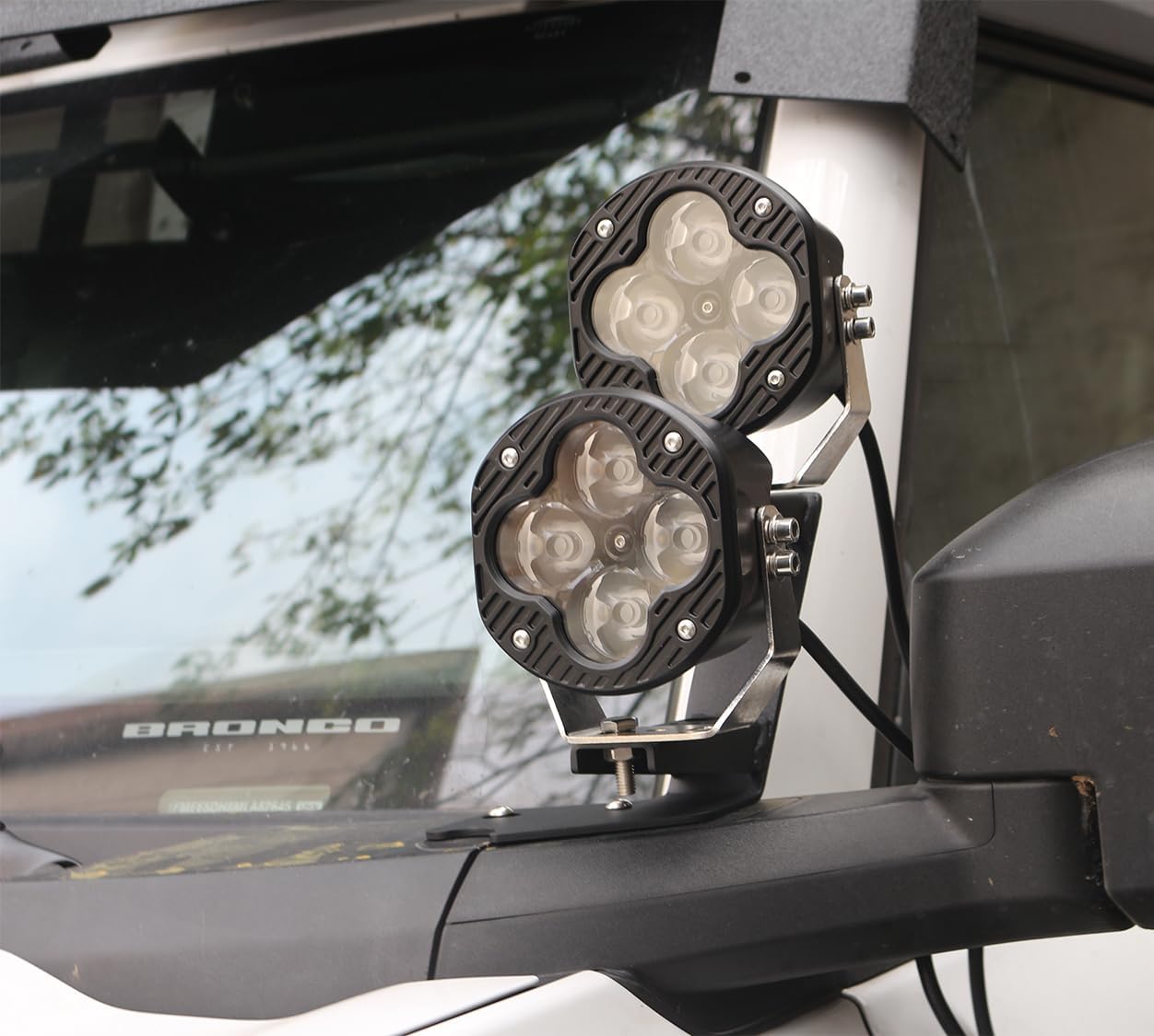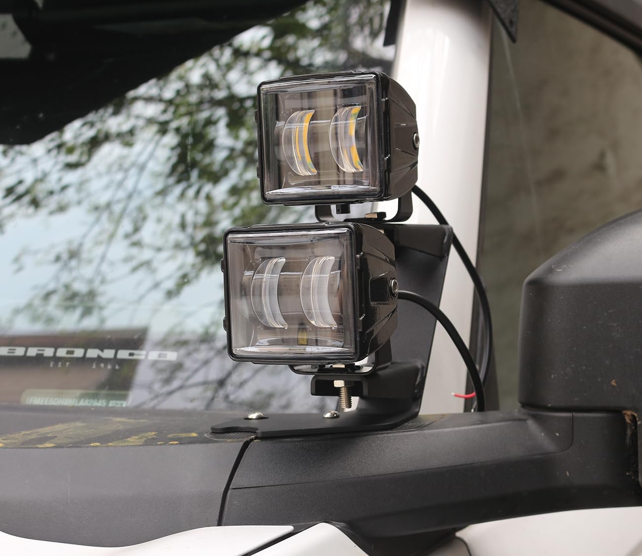 Light Mount Bracket Application: A-Pillar Windshield Hinge Mounting Brackets compatible with Ford Bronco 2021 2022 (Not compatible with Bronco sport); Fit for bottom-mounted LED driving passing lights, work lights, auxiliary spot/fog lights.