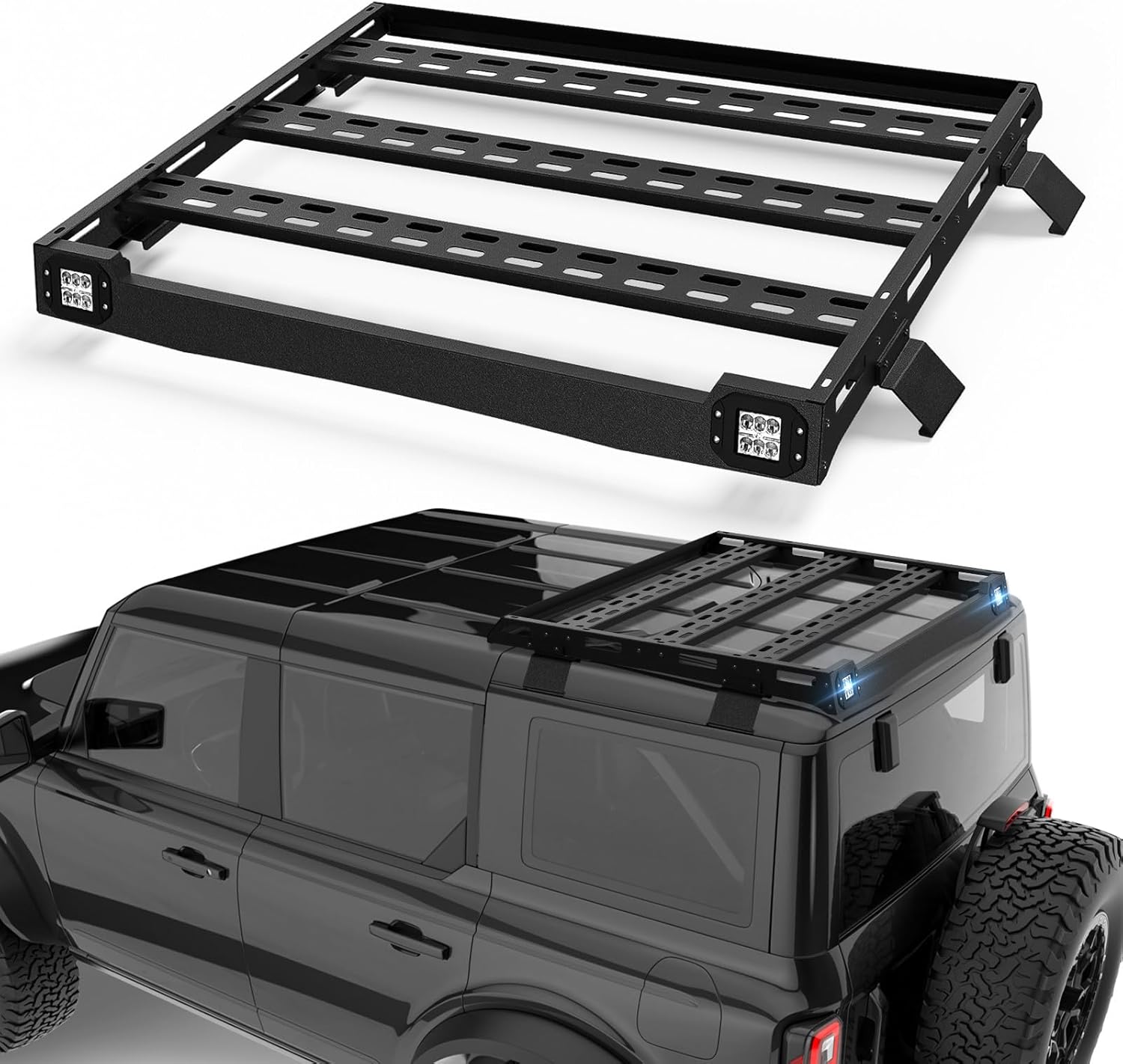 【Ample Load-Bearing Capability】: This rack provides substantial additional cargo room for your Bronco, supporting a commendable load capacity of 200 pounds. It effortlessly accommodates camping gear, off-road equipment, bicycles, travel cargo, and an array of other items to suit your needs.