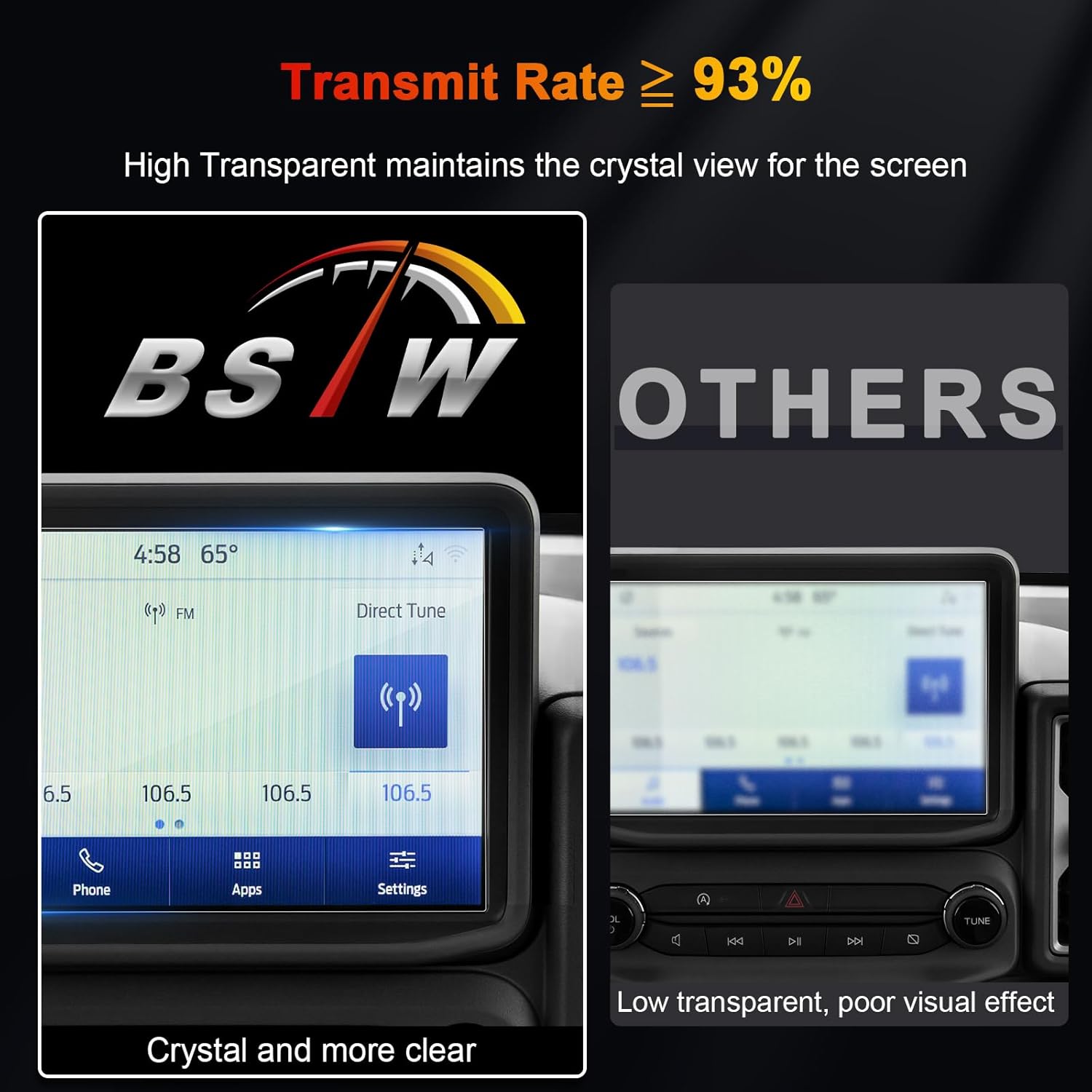 Crystal-Clear Clarity: Experience uncompromised HD visuals with our high-transparency tempered glass protector. With 93% light transmittance, your Bronco’s screen will display vivid, true-to-life colors and sharp details