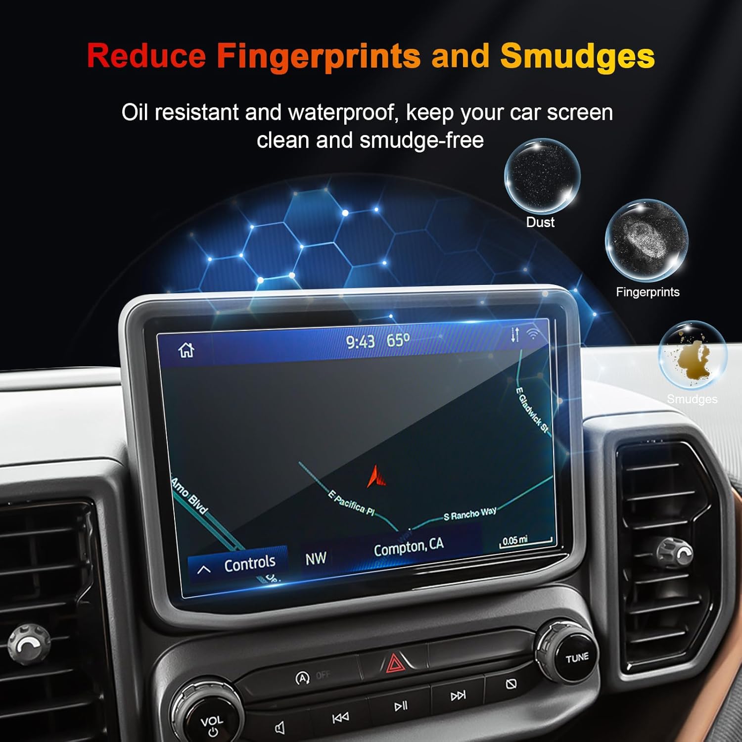 Reduce Fingerprints and Smudges: Our advanced oleophobic coating repels oils and smudges, 2024 Ford Bronco screen protector reduces fingerprints by 90%, keeping your screen clean and crystal clear longer