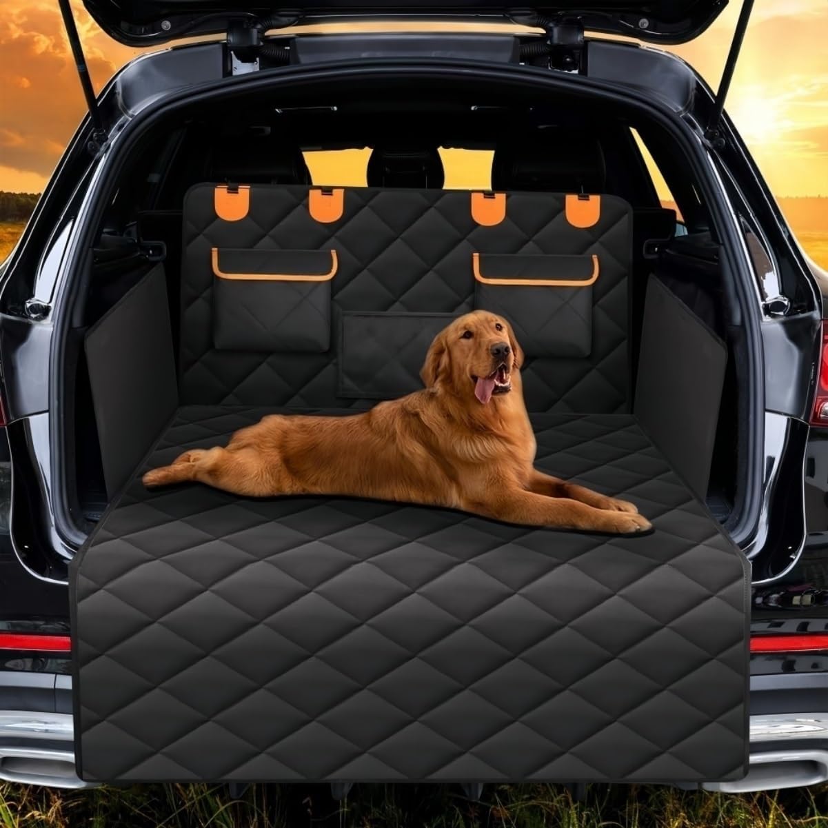 [EXCELLENT PERFORMANCE]: Tear-resistant and durable pet cargo cover liner with side protection protects your trunk from dirt, scratches and dog hair. The bumper is well protected by the overhang flap when your dog get into the trunk your car