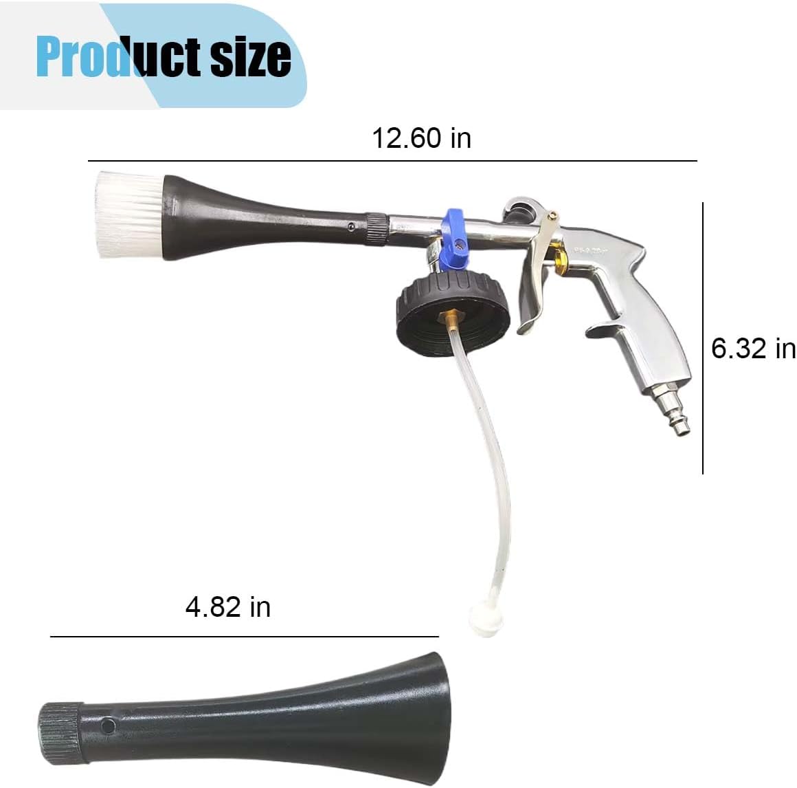 【Product Includes】:You will receive 1 car cleaning gun, 1 nylon brush nozzle, and 1 trumpet nozzle. This high-pressure cleaning spray gun is mainly used to clean wheels, air conditioners, steering wheels, windows, carpets, seats, glass, seat belts, leather interiors, furniture, and various gaps.