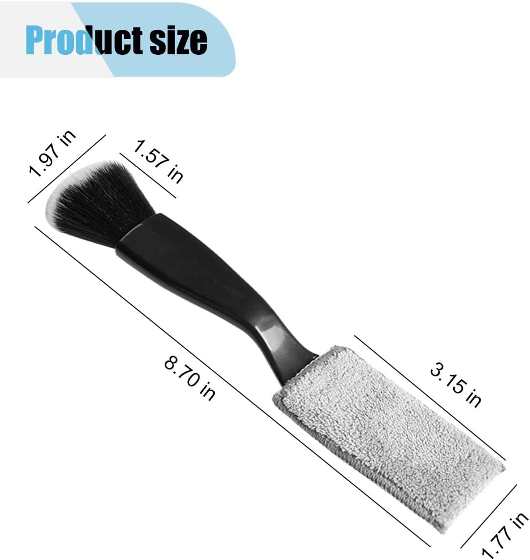 【Universal Fit】:The total length of this car interior cleaning brush is 8.7 inches, and the width of the nylon brush is 1.77 inches, the width of the coral pile brush is 1.97 inches, can be widely used in a variety of cars, SUVs, trucks, etc., is a perfect car interior dust removal tool.
