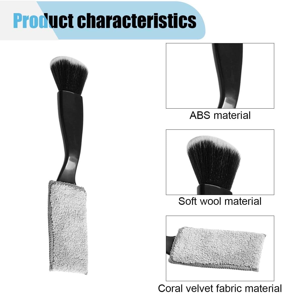 【Two in One Design】:The car detail brush adopts a double-headed design of cleaning cloth and bristles, which can be used together to clean the dust, dirt, food residue, pet hair, etc. in the cracks of the car, which will achieve a better cleaning effect.