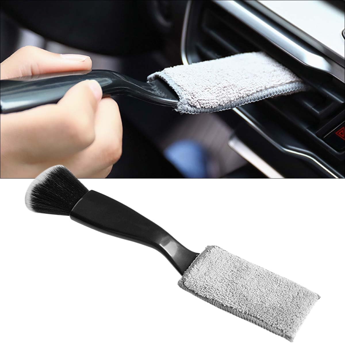 Car Double Head Clean Brush, 2 in 1 Duster for Car Clean, Car Interior Dust Detailing Brush for Air Vents Dashboard Screen, Soft Car Cleaning Tool Accessories (Black)