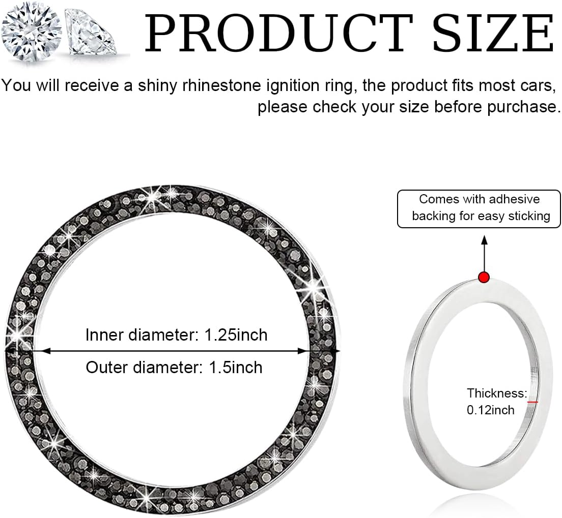 【Wide Application】: You will receive a sparkling rhinestone decorative ring with an inner diameter of 1.25 inches and an outer diameter of 1.5 inches. They are suitable for most car ignition, for example, they can be used for car engine start-stop button, gear shifter and so on.