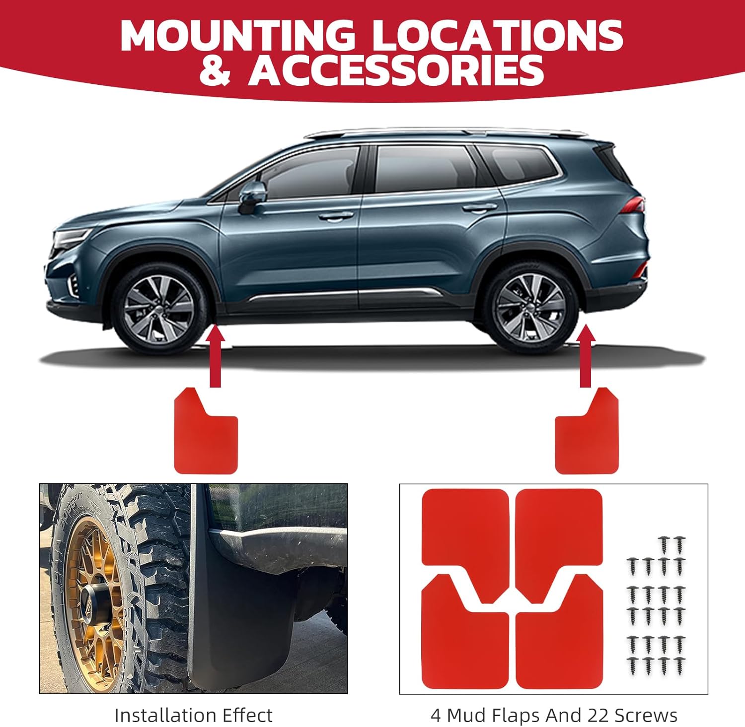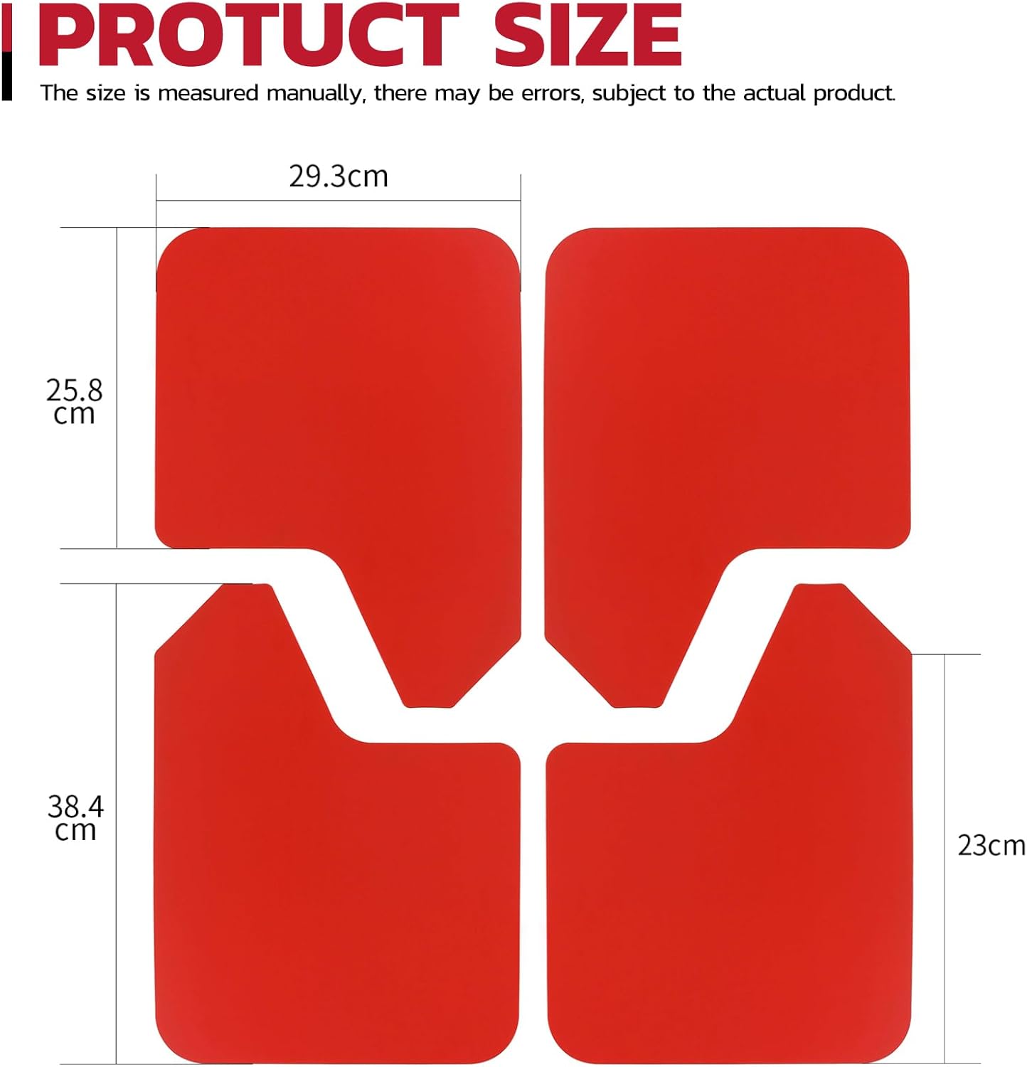 Be the first to review “Car Mud Flaps 4PCS Universal Fit Red Splash Guards Flexible and Bendable Mudguard Fender Flare Cuttable Mudflap Car Accessories Compatible with Pickup SUV Trucks”