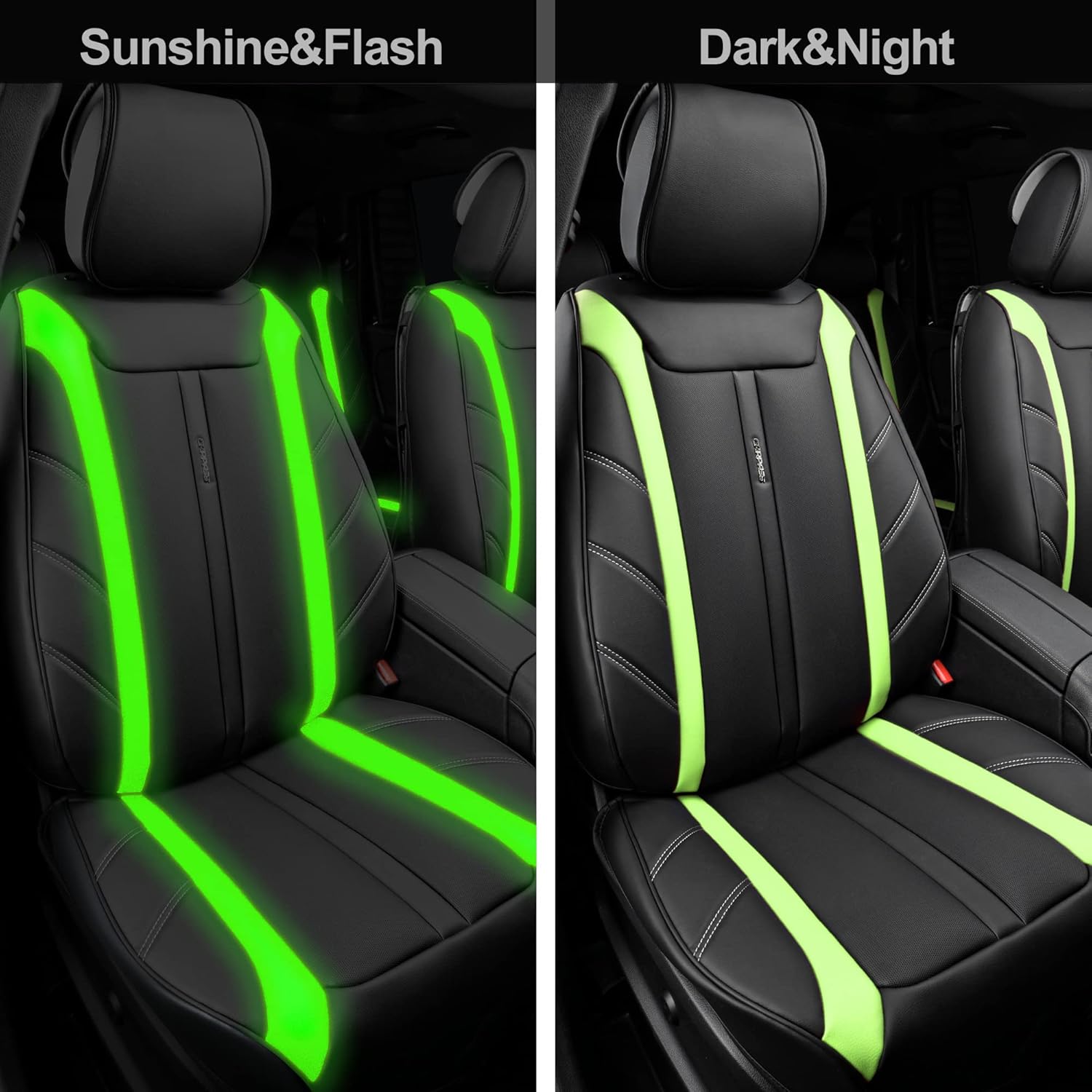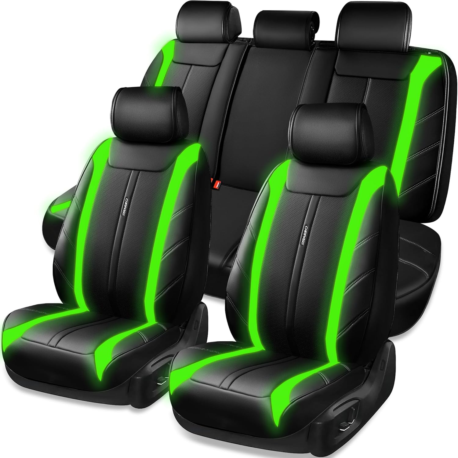 CAR PASS Luxury Faux Leather Seat Covers Full Set, Breathable Sporty Premium Leather Auto Seat Covers Waterproof Anti Slip Universal Fit for 95% Trucks SUV Sedans Van, Black and Fluorescent Green