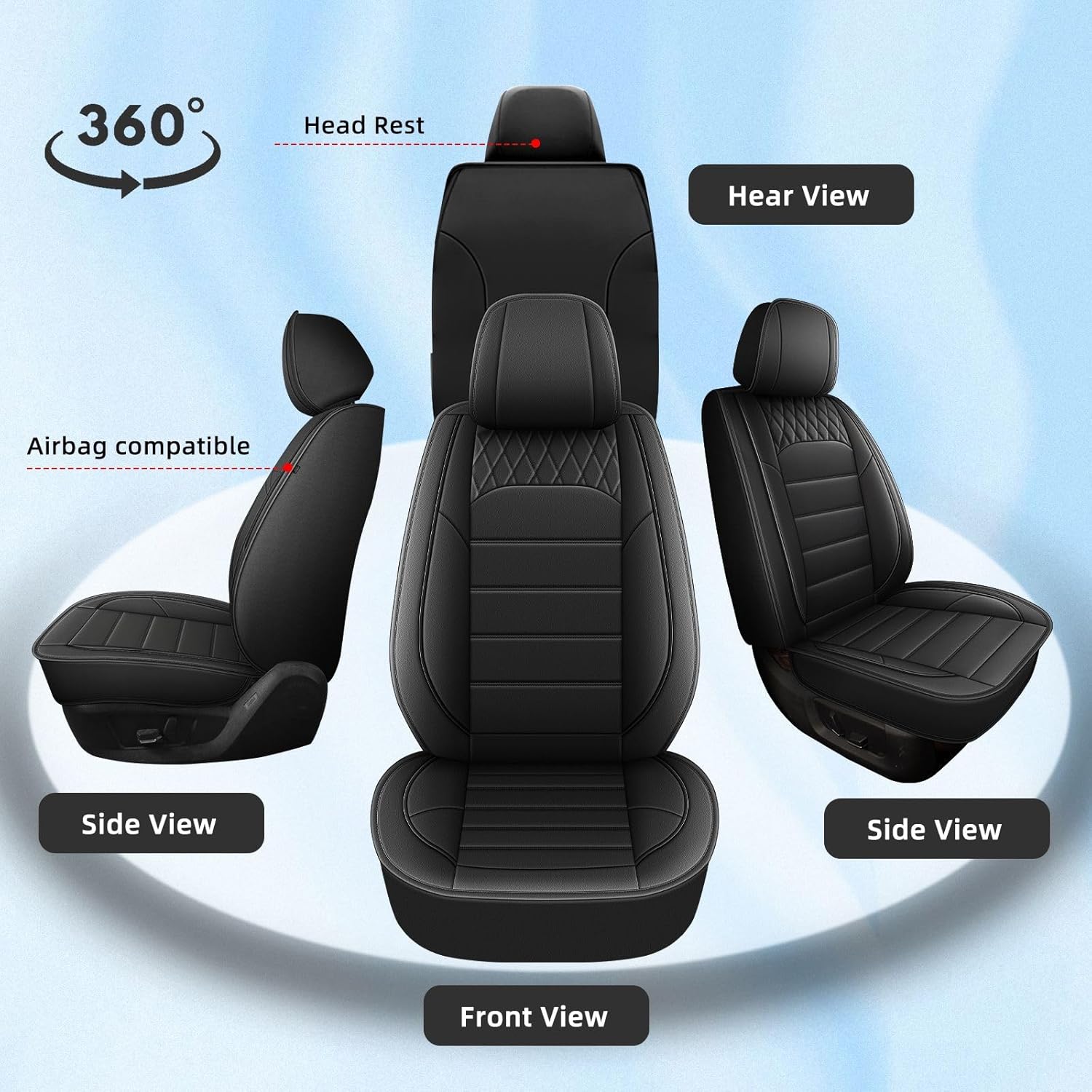Car Seat Covers Fit for Ford Bronco Sport 2021-2024 2025 Full Set Faux Leather Automotive Seat Covers Waterproof Car Seat Cushion Protector Compatible with Airbag(5 Seats, Black)